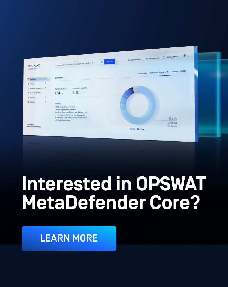 Organizations across various industries, including finance, healthcare, and critical infrastructure, rely on OPSWAT MetaDefender Core for: