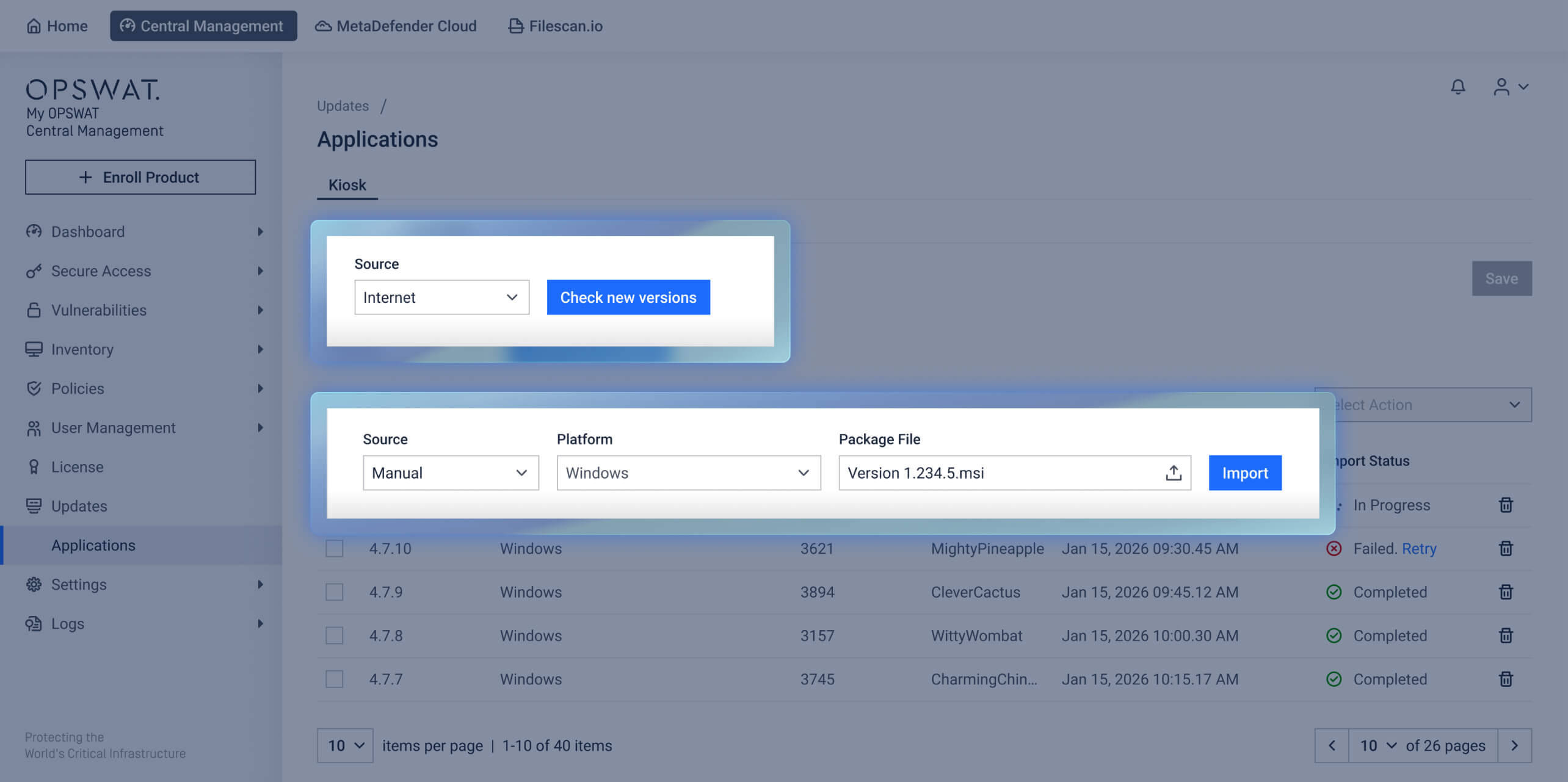 With this enhancement, Kiosk software upgrades are managed directly from My OPSWAT Central Management.
