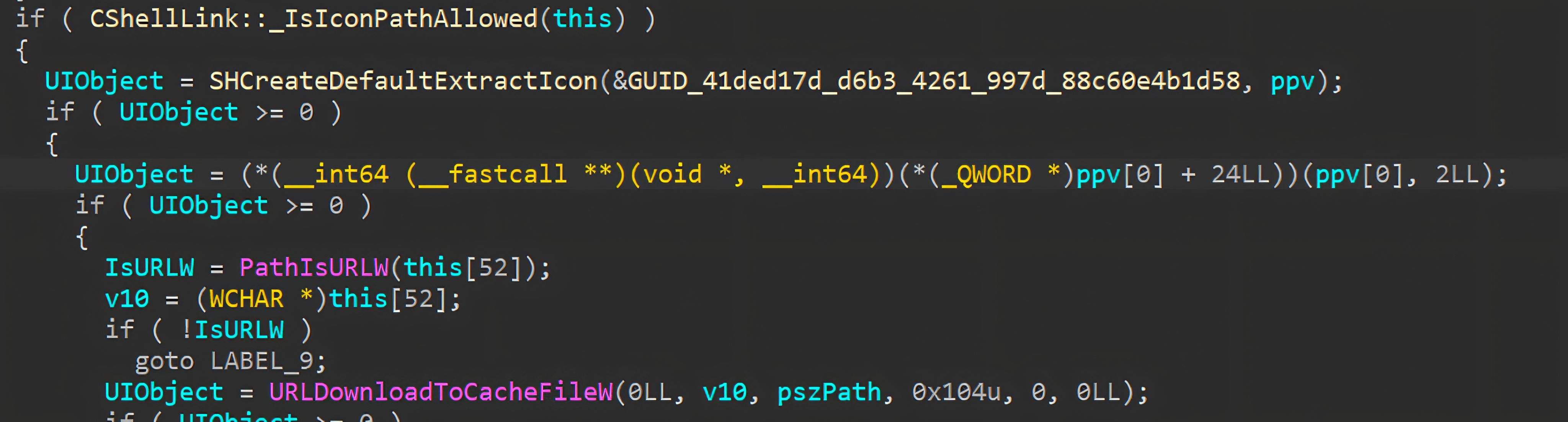 • Icon retrieval via URLDownloadToCacheFileW (when the shortcut’s icon source is a remote URL).