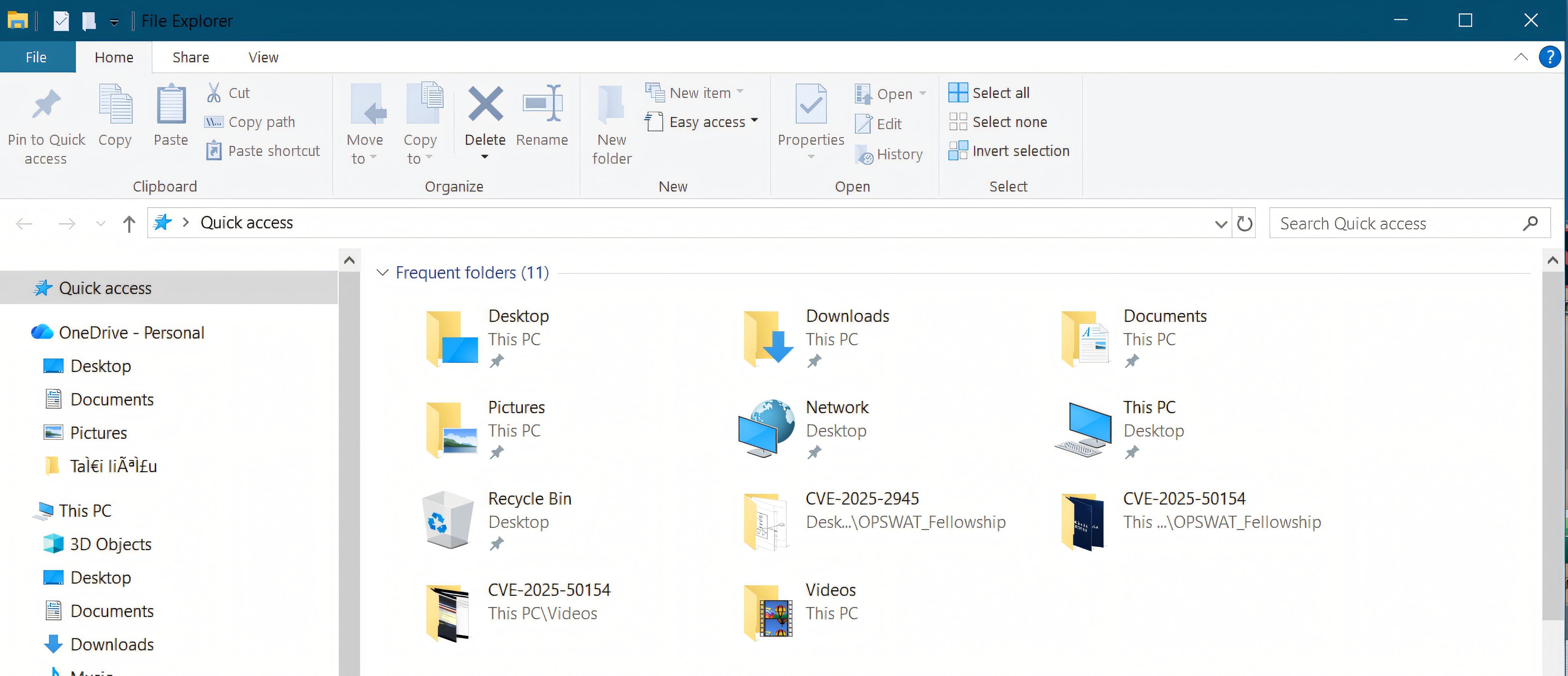 In an isolated lab, our OPSWAT Cybersecurity Fellowship participants validated CVE-2025-50154 by using a shortcut (.lnk) that referenced a remote SMB/UNC path. On a vulnerable Windows system, simply browsing the folder in Windows Explorer triggered an SMB connection during normal shortcut processing, causing NTLM authentication exchange material to be sent to the remote endpoint—without the victim executing the shortcut target.