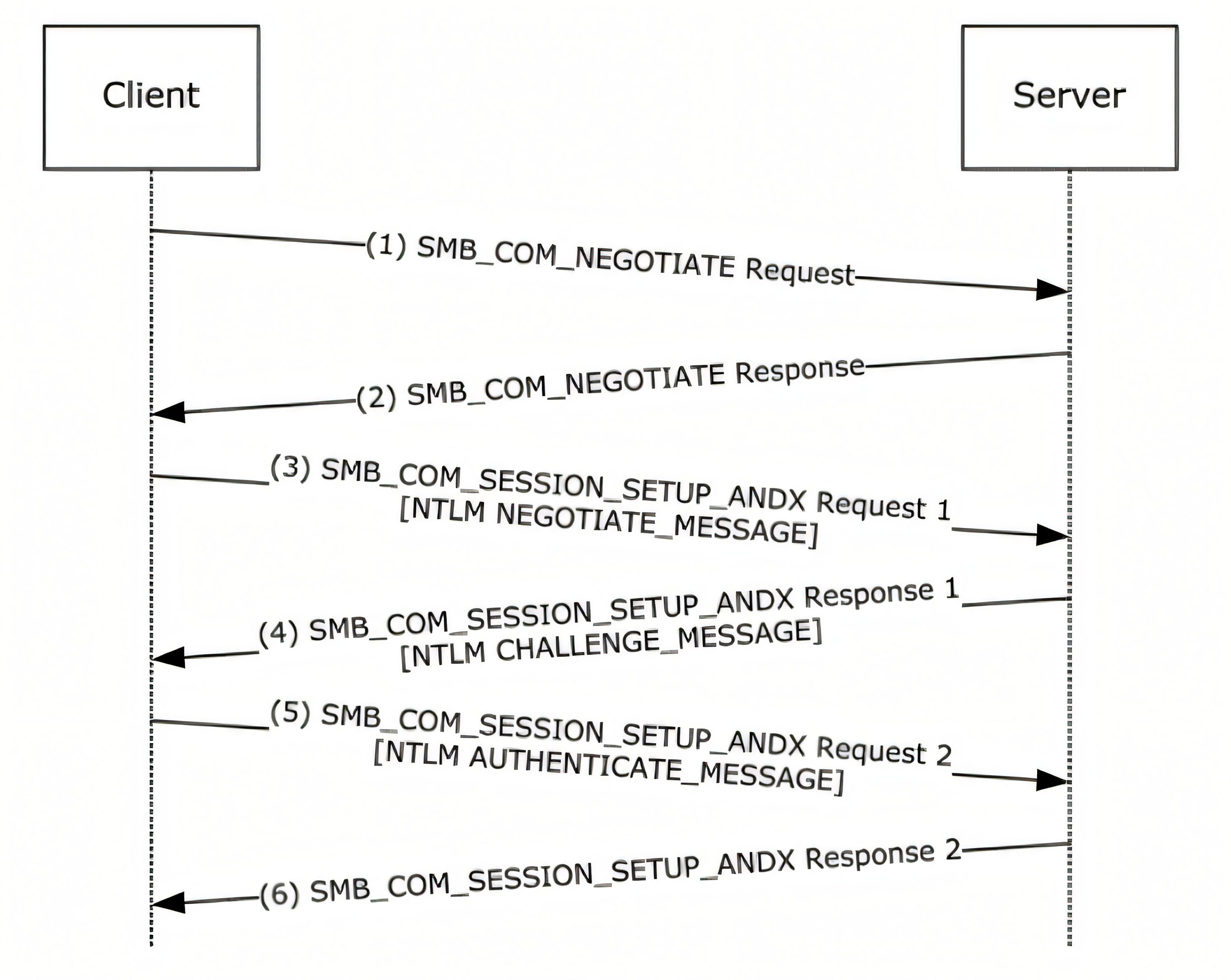 In Windows file sharing, SMB authentication typically prefers Kerberos in domain environments, but NTLM may still be negotiated when Kerberos is unavailable or not selected. NTLM is a challenge - response protocol: the client first advertises capabilities, the server returns a challenge (nonce), and the client responds with an authentication message derived from the challenge and the user’s secret - without sending the plaintext password.