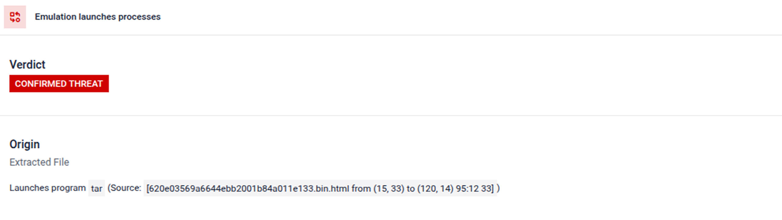 The extracted file launches a tar process, indicating execution of an embedded payload.