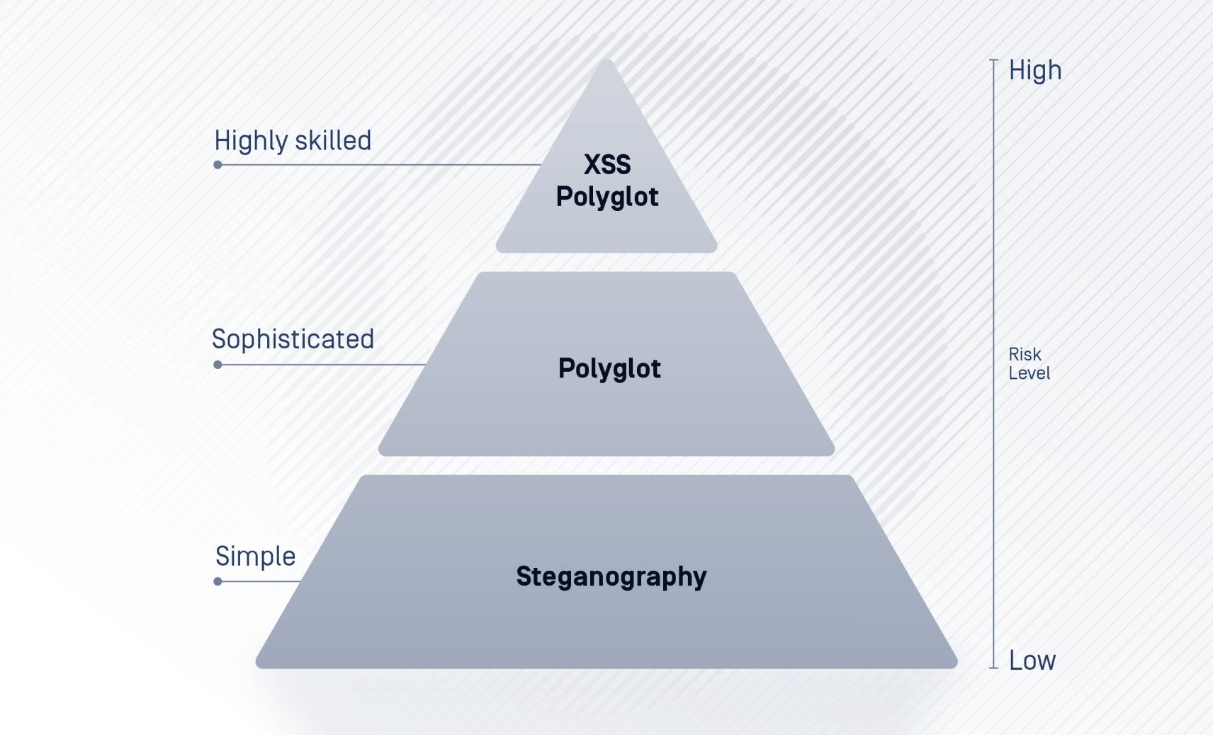 XSS polyglot payloads represent an elevated risk by combining polyglot techniques with XSS attacks. The payloads use polyglot images to conceal scripts that exploit browser vulnerabilities and bypass key protections like CSPs. This enables much more dangerous scripts to be injected into trusted sites and apps.