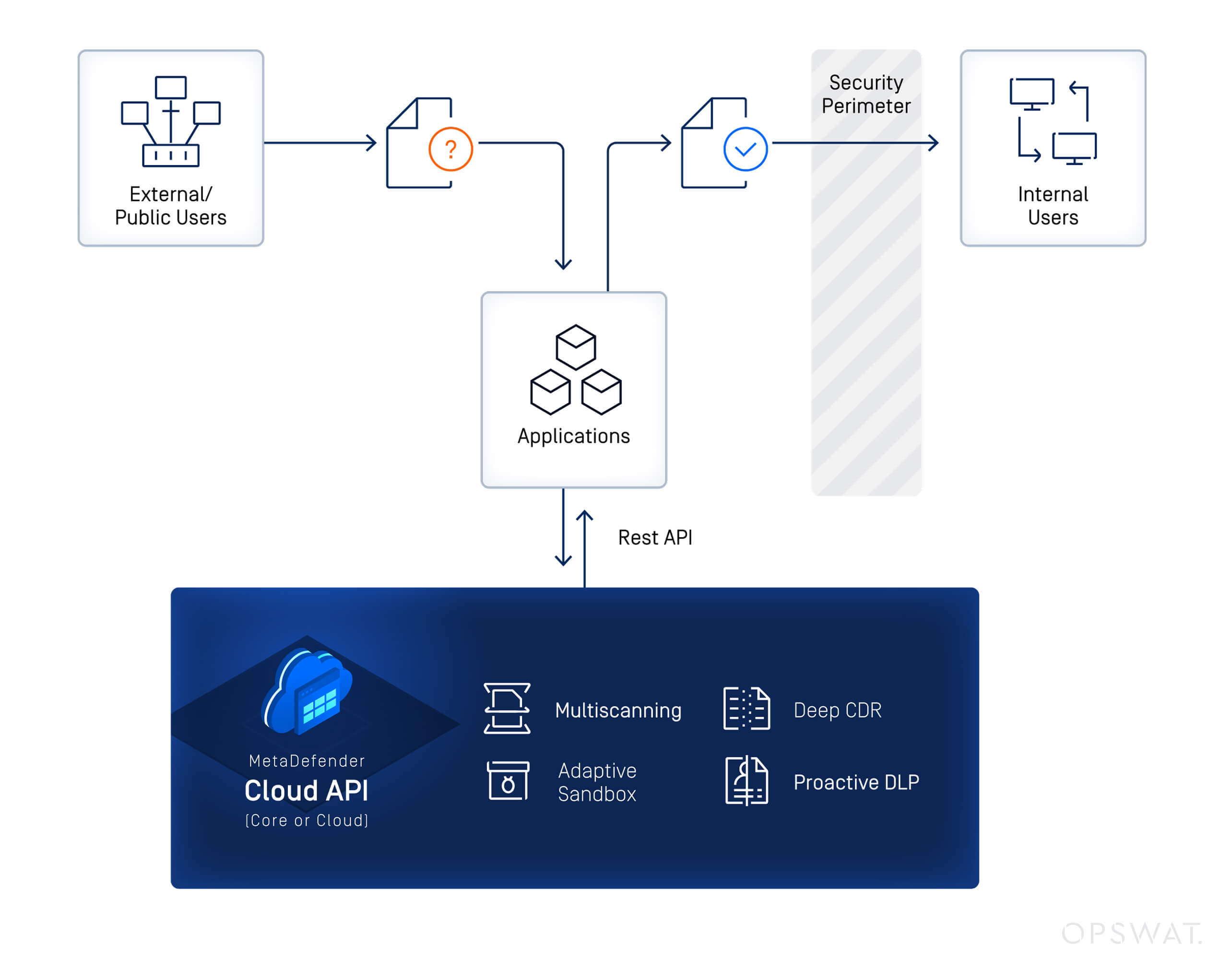 Recognizing the need for a capable and scalable solution, which keeps them compliant and eliminates Zero-Day threats, the customer integrated MetaDefender Cloud into their file upload workflow.