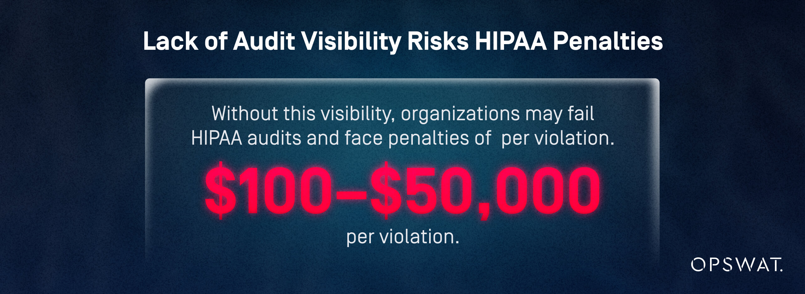 Auditors expect complete traceability for every PHI transfer. Without this visibility, organizations cannot demonstrate HIPAA compliance during audits and may face enforcement actions, including civil monetary penalties ranging from $100 to $50,000 per violation.