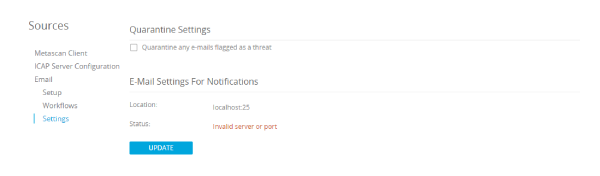We have also moved the location of the Mail Agent configuration page to be within the sources tab. This tab contains all file sources including the MetaDefender Endpoint, ICAP Servers, and Mail Agent, allowing for security administrators to configure server and client behavior within a single pane.