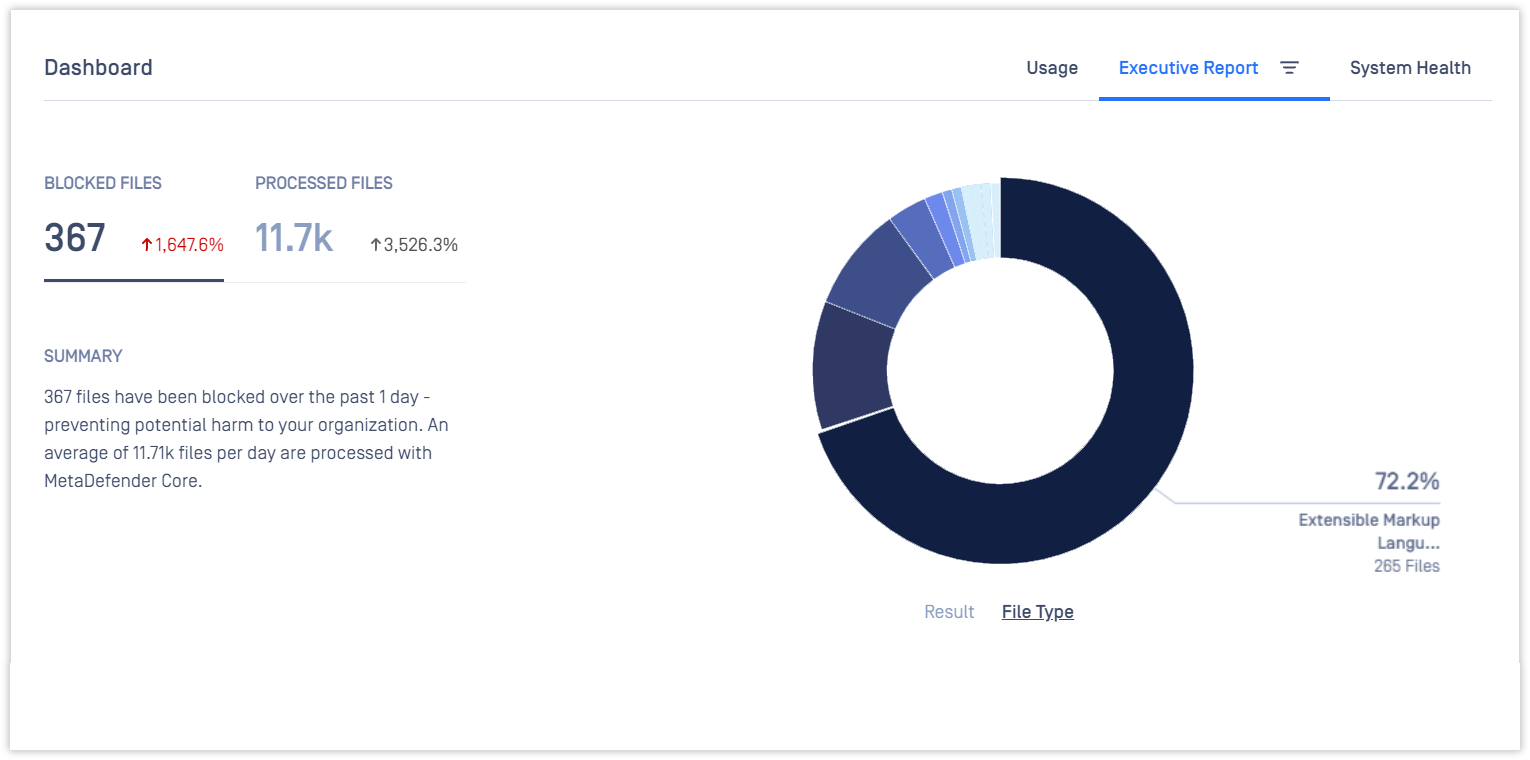 With this release, we're excited to bring users a brand-new UI for the administration console. The unified management console offers a real-time dashboard equipped with simple but powerful reporting functionality and an advanced set of MetaDefender Core features. Users are enabled to control configurations, user management, policies, reporting, and more via a single intuitive console.