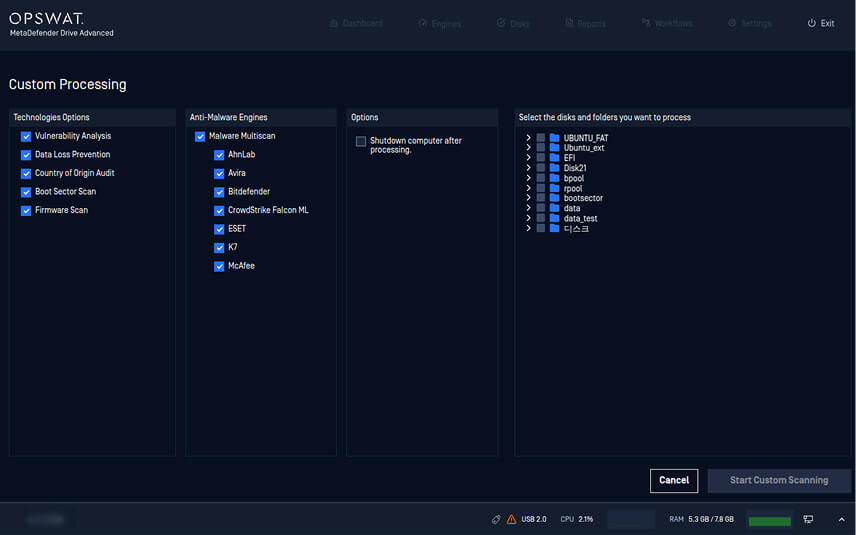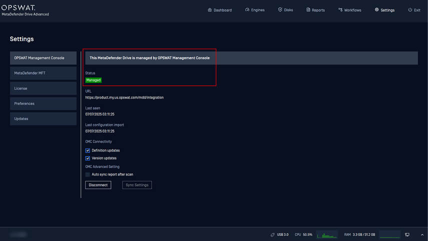 MetaDefender Drive can now be updated directly from My OPSWAT Central Management 10, including both MetaDefender Drive software and engine versions.
