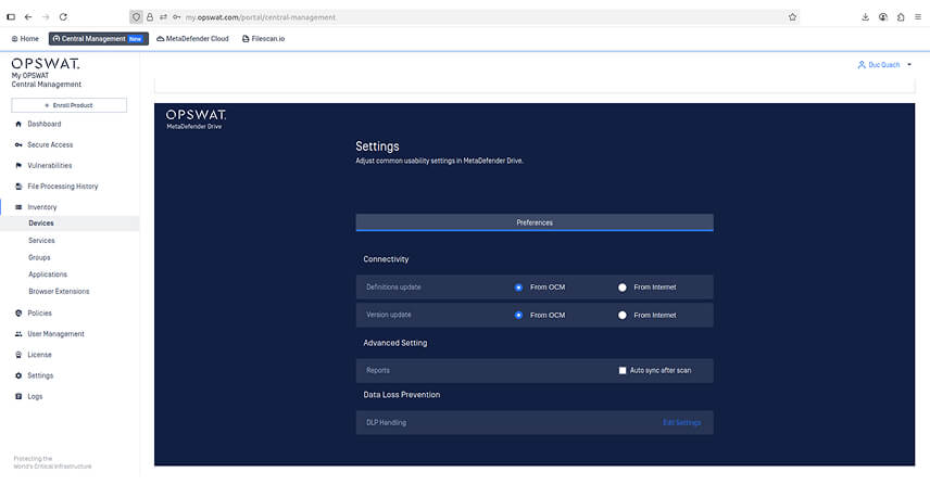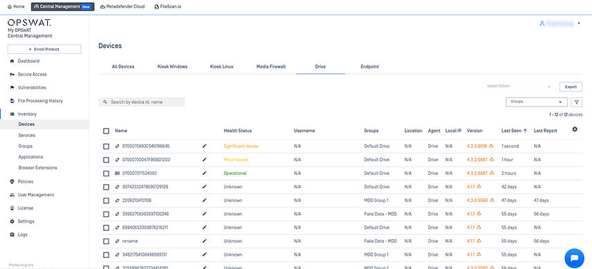 1. Ensure MetaDefender Drive is enrolled and managed by My OPSWAT Central Management 10.