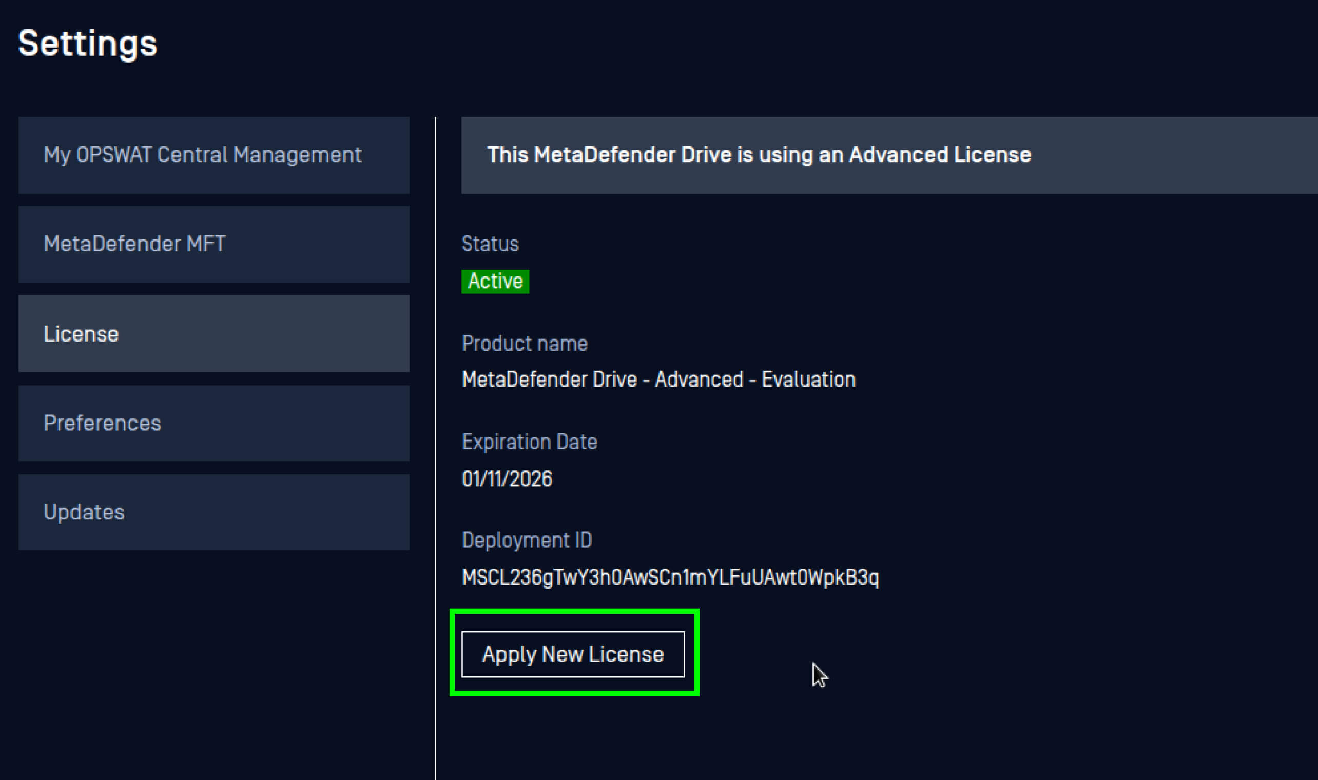 - Click Apply New License.