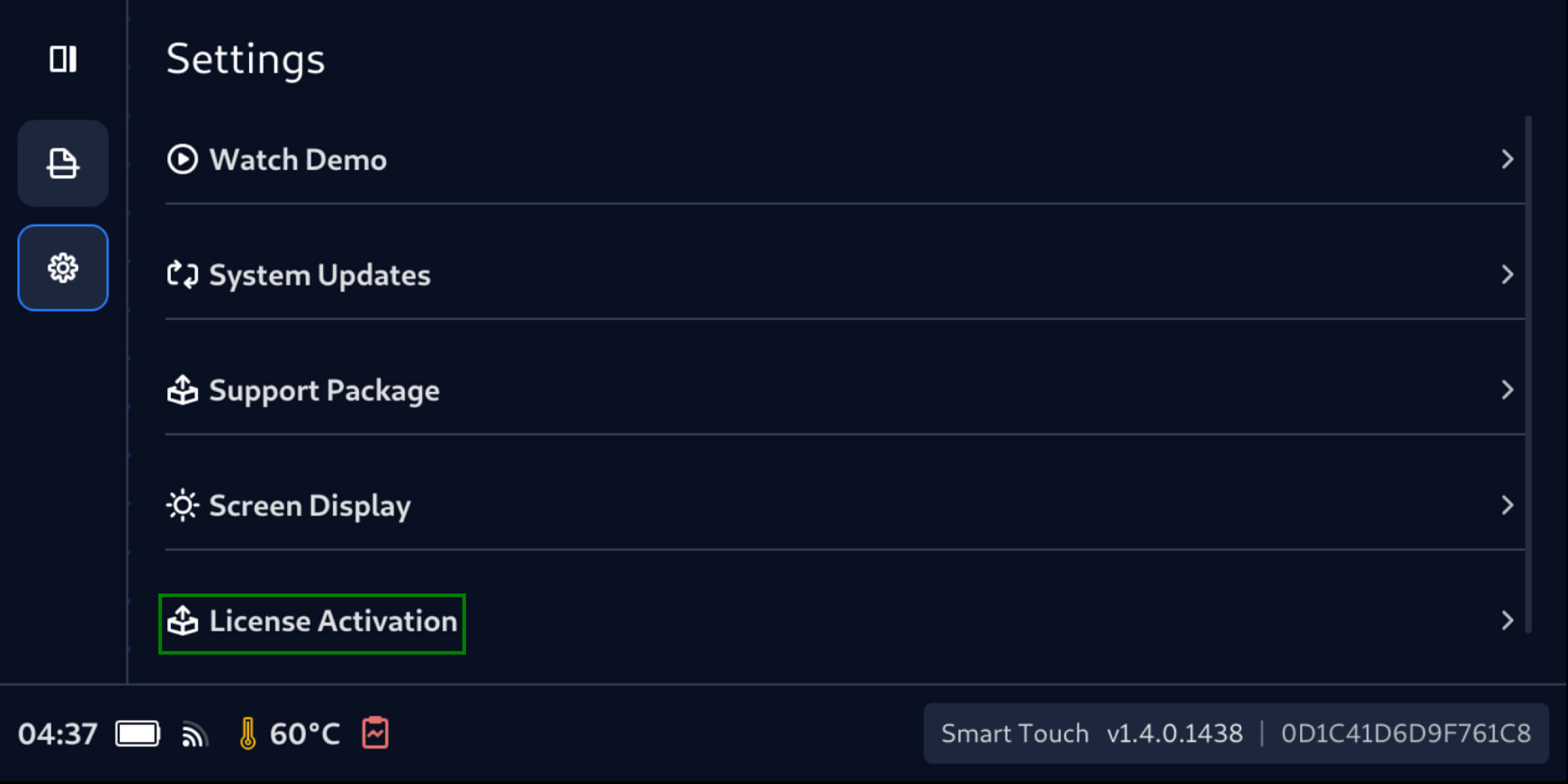 - Navigate to Settings, then License Activation.