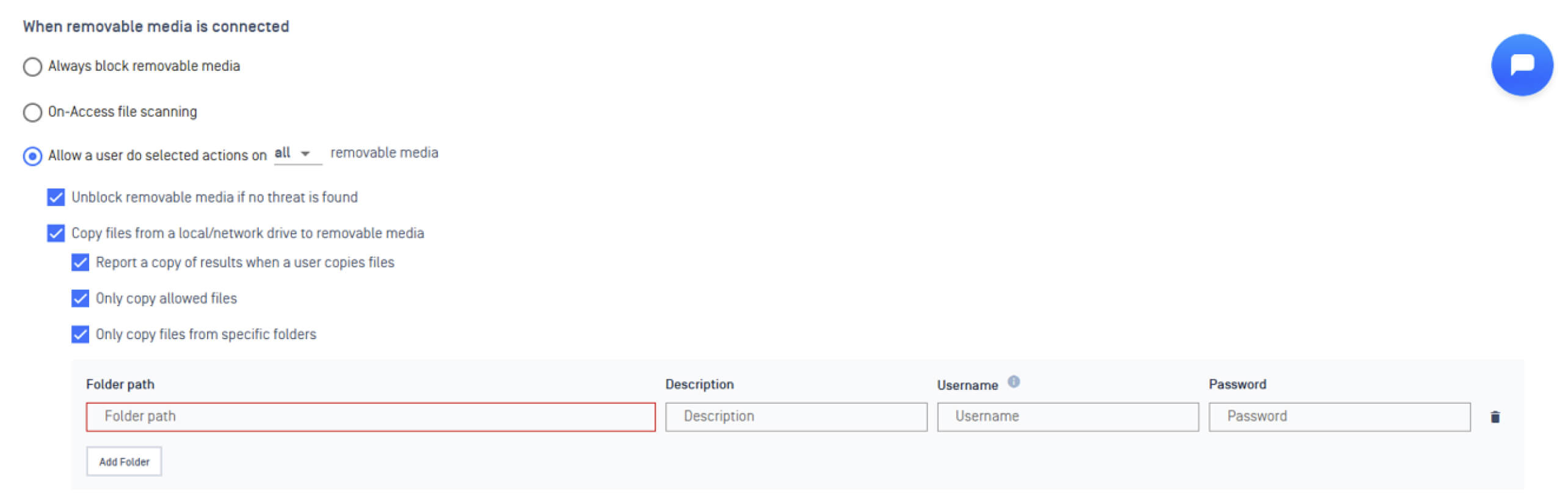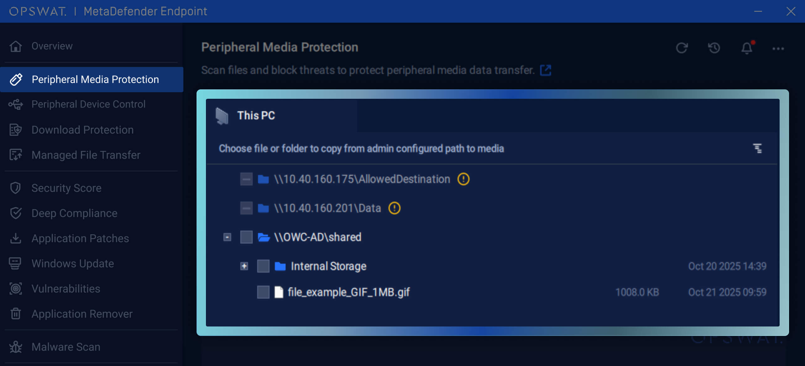 This enhancement enables users to only select files from predefined paths configured by administrators to copy to removable media drives. Because browsing and copying files outside of those specified directories is restricted, this feature significantly reduces the risk of accidental or unauthorized data transfer.