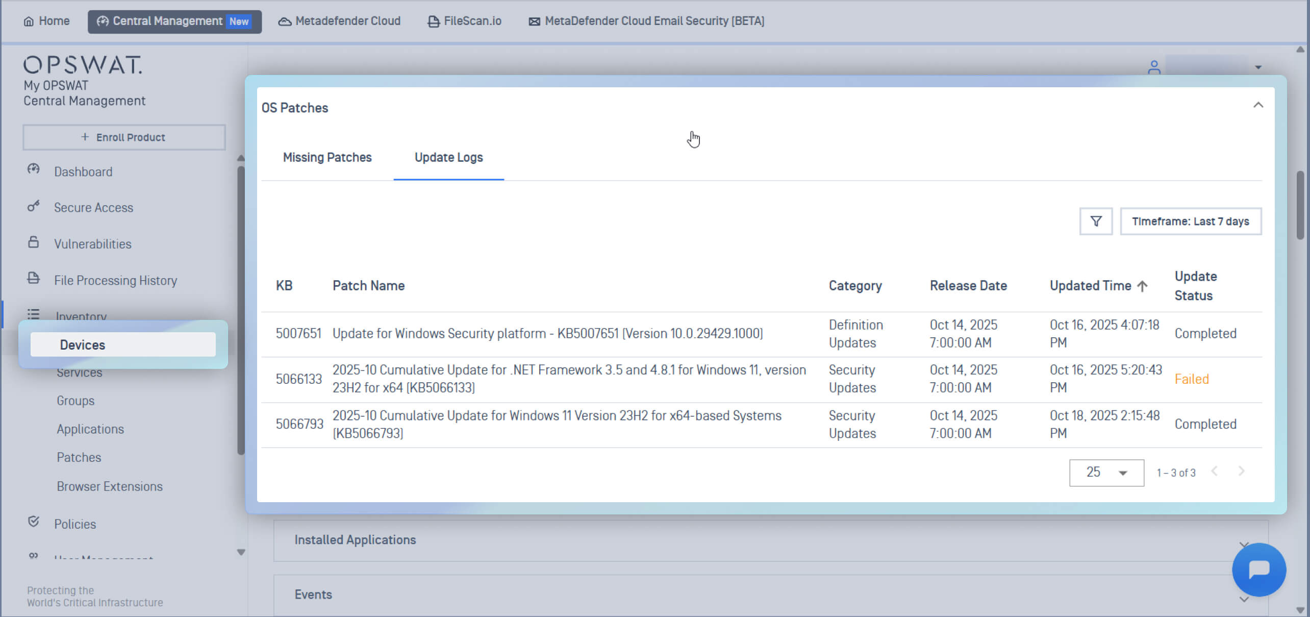 MetaDefender Endpoint administrators can now deploy all missing patches to a device at once, helping reduce manual intervention and saving time while ensuring critical endpoints are fully protected. This feature also enables faster response to vulnerabilities and supports maintaining a stronger security posture across the organization.