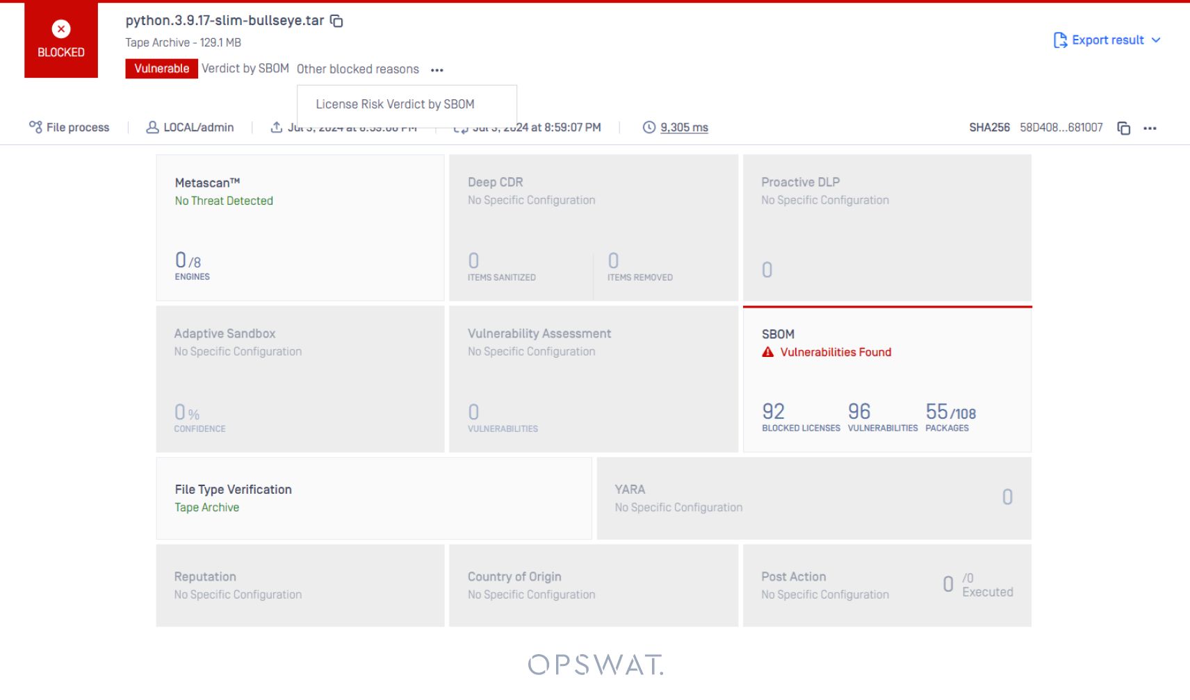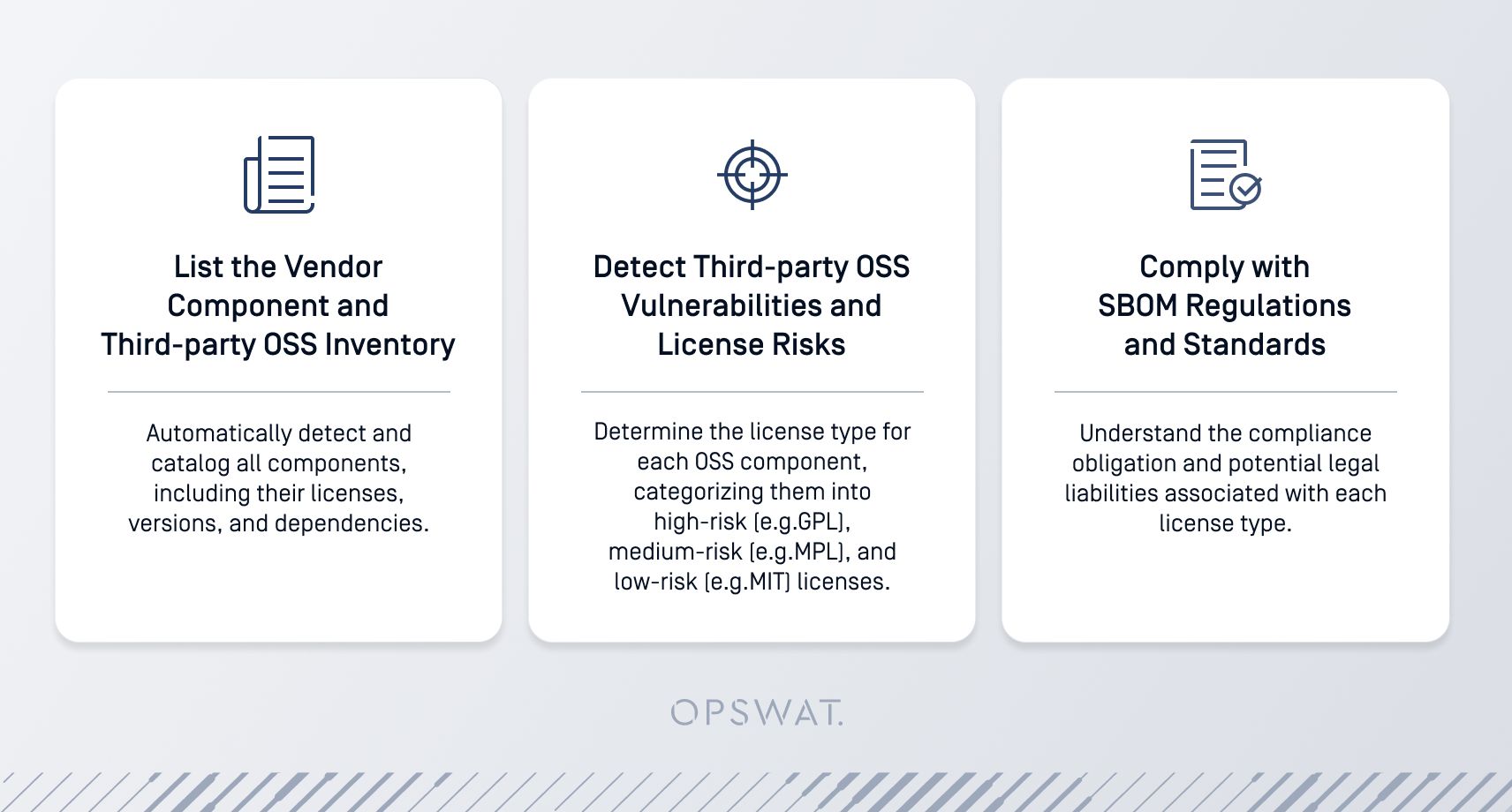 License detection is an essential component of SBOM for managing open-source security. OPSWAT SBOM empowers you to gain control by providing automated scanning, clear visualizations of license information, and the ability to enforce approved licenses. This comprehensive approach ensures compliance, reduces risk, and strengthens your software supply chain.