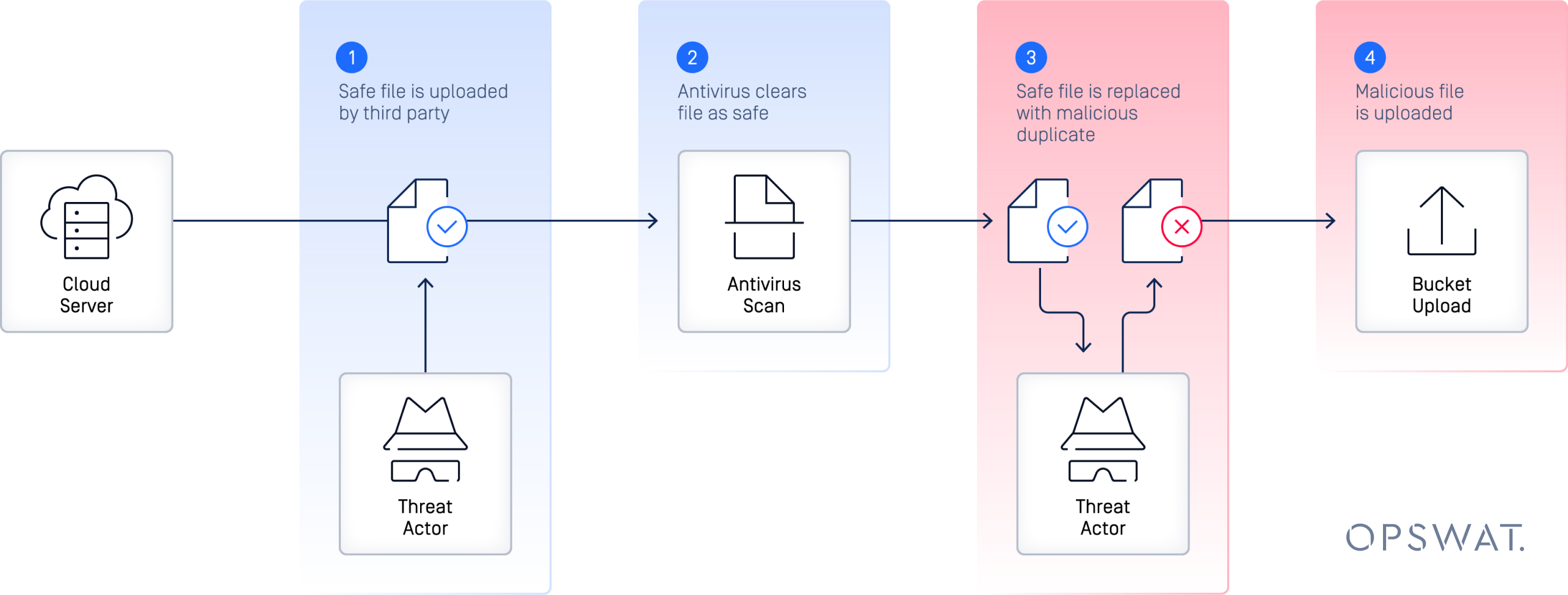 In asynchronous or delayed processing environments, attackers may upload a clean file to pass validation, then replace it with a malicious version before it is stored or executed. This race condition can lead to files being trusted when they should not be.