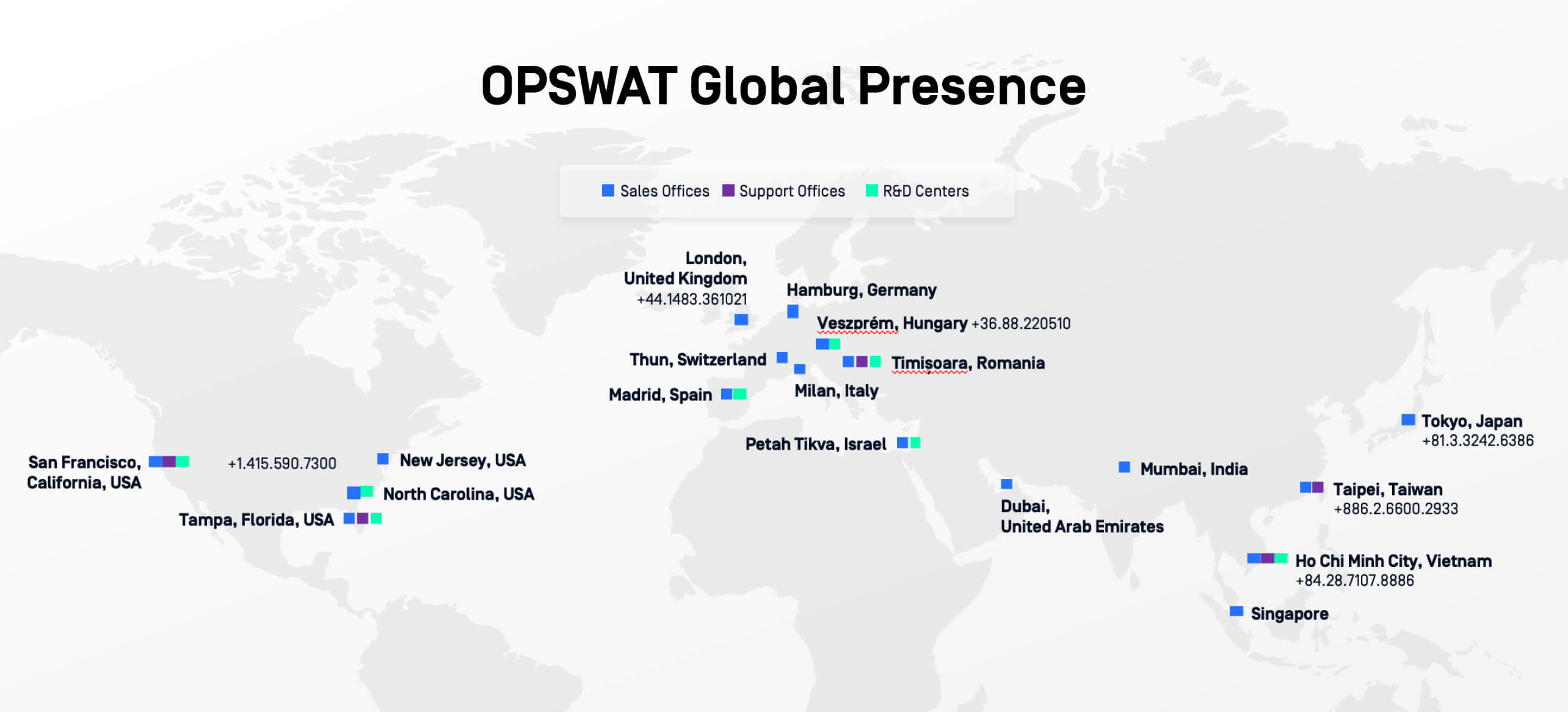 OPSWAT operates a 24x7 global support model with technical teams located in North America, EMEA, and APAC.