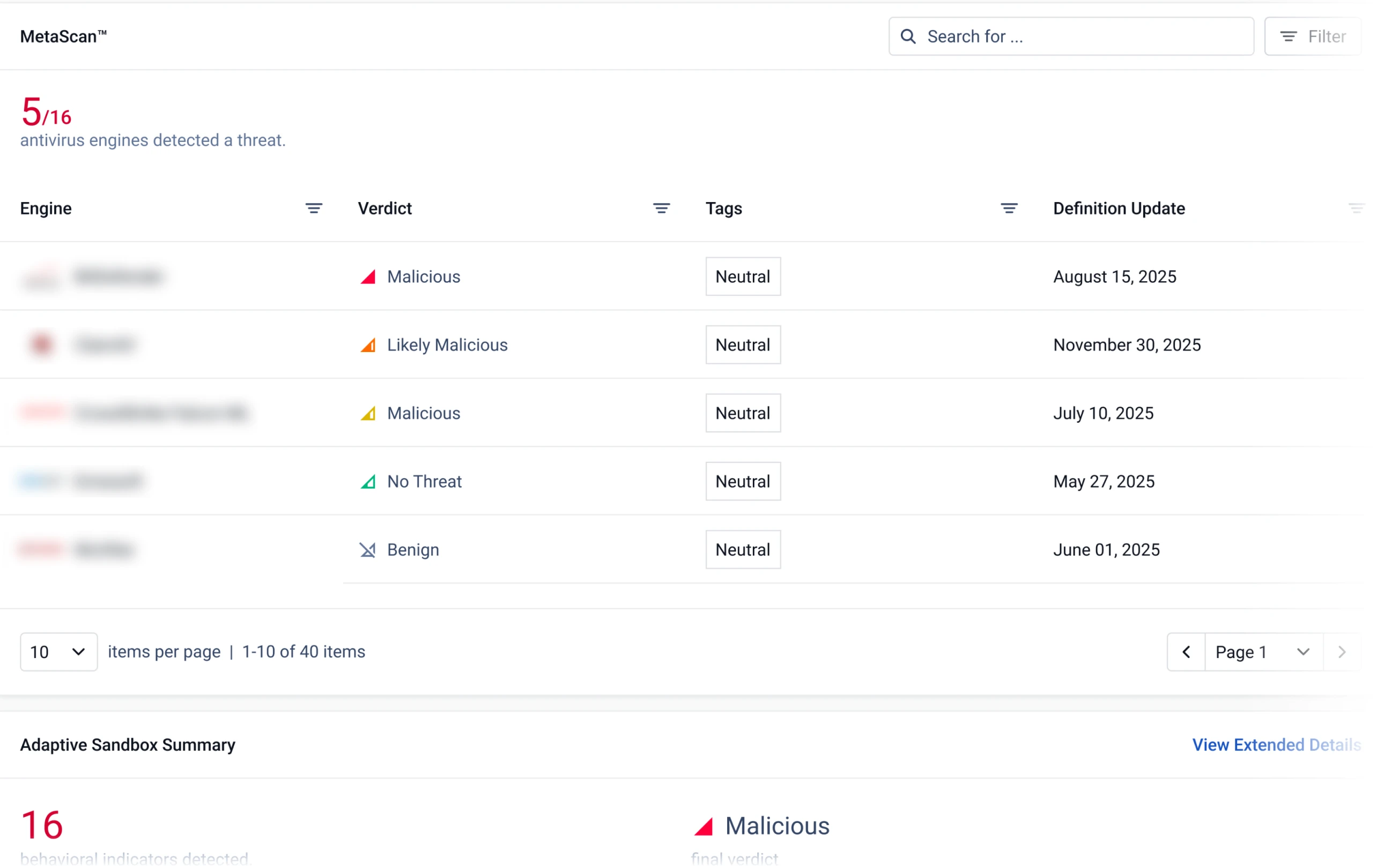 Scan files with 20+ industry-leading anti-malware engines and achieve over 99% detection rates.