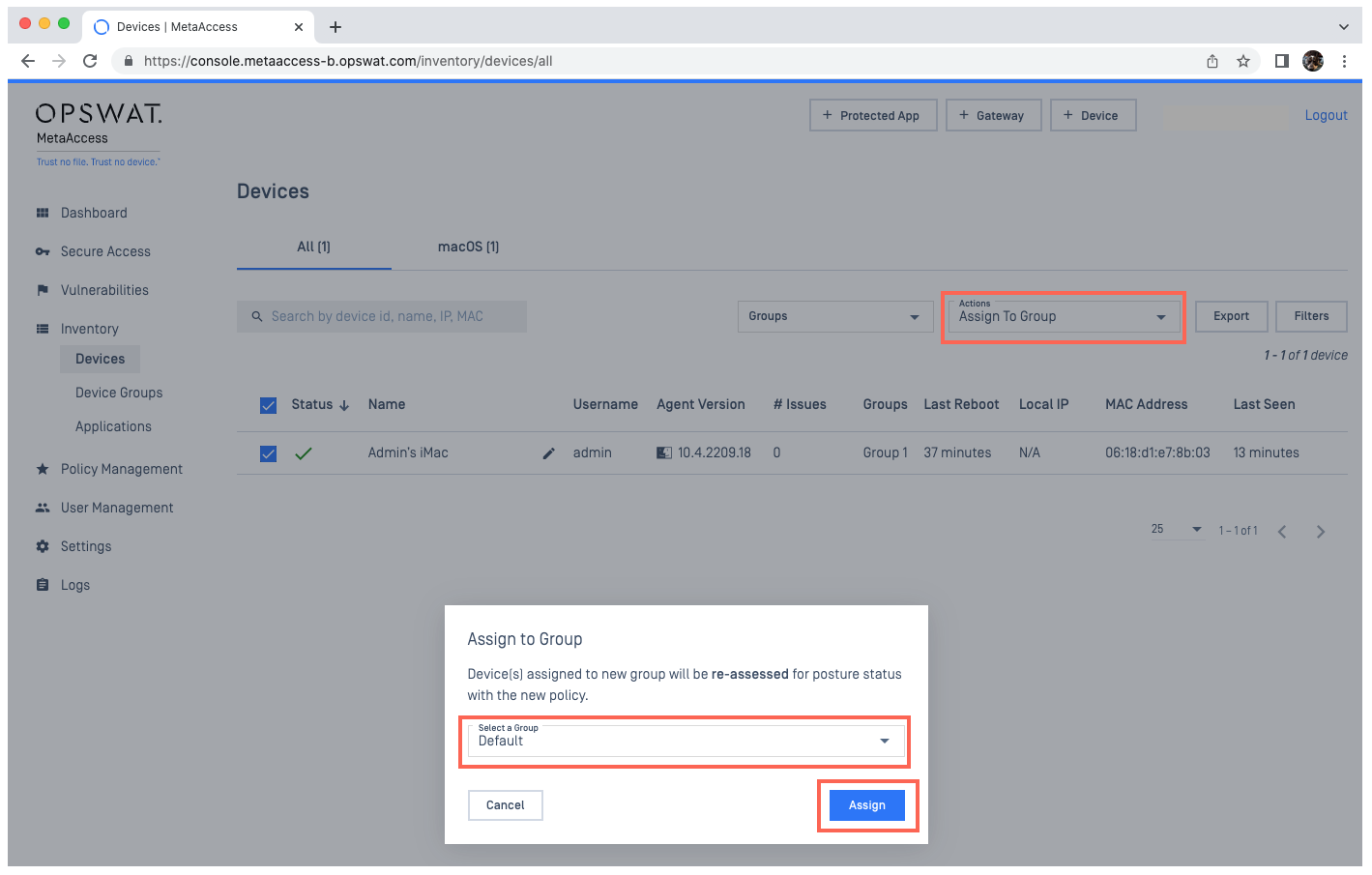 If you have followed the instructions above but are having difficulty Managing Your Endpoint Devices By Groups, please open a Support Case with the OPSWAT team via phone, online chat or form, or feel free to ask the community on our OPSWAT Expert Forum.