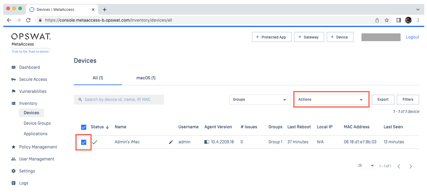 - Once located, check the selection boxes alongside the required devices, as illustrated in the screenshot below.