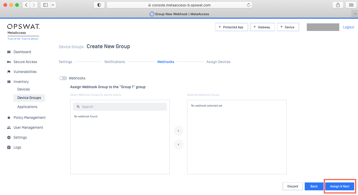 - For now, click Next or Assign & Next in the lower right-hand corner of the page until you reach the Assign Devices page, as illustrated in the screenshots below.