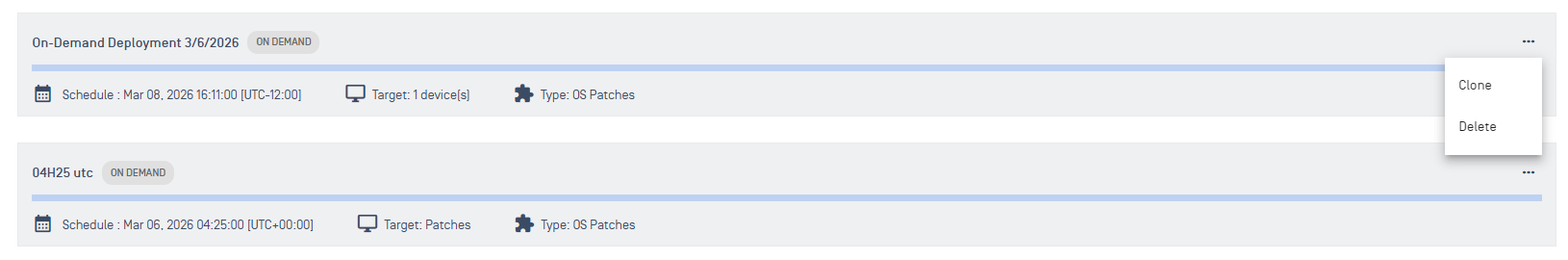 - Supported Actions: Select Clone to duplicate the deployment or Delete the deployment before they start.