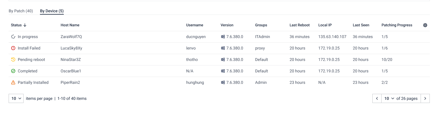 - Pending Reboot: At least one patch on targeted device requires a restart.