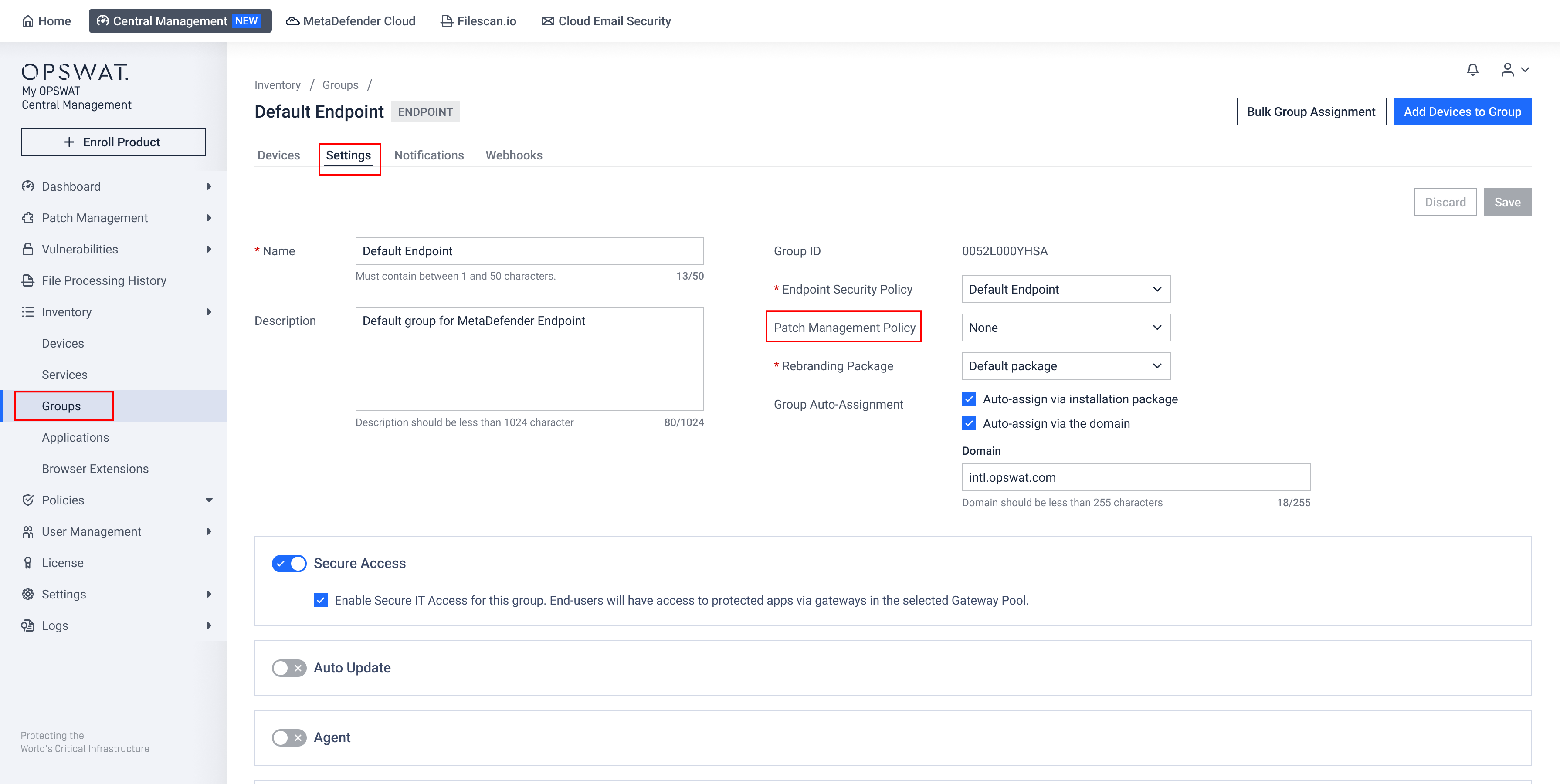 Policies can be assigned to groups of endpoints via Inventory > Groups.