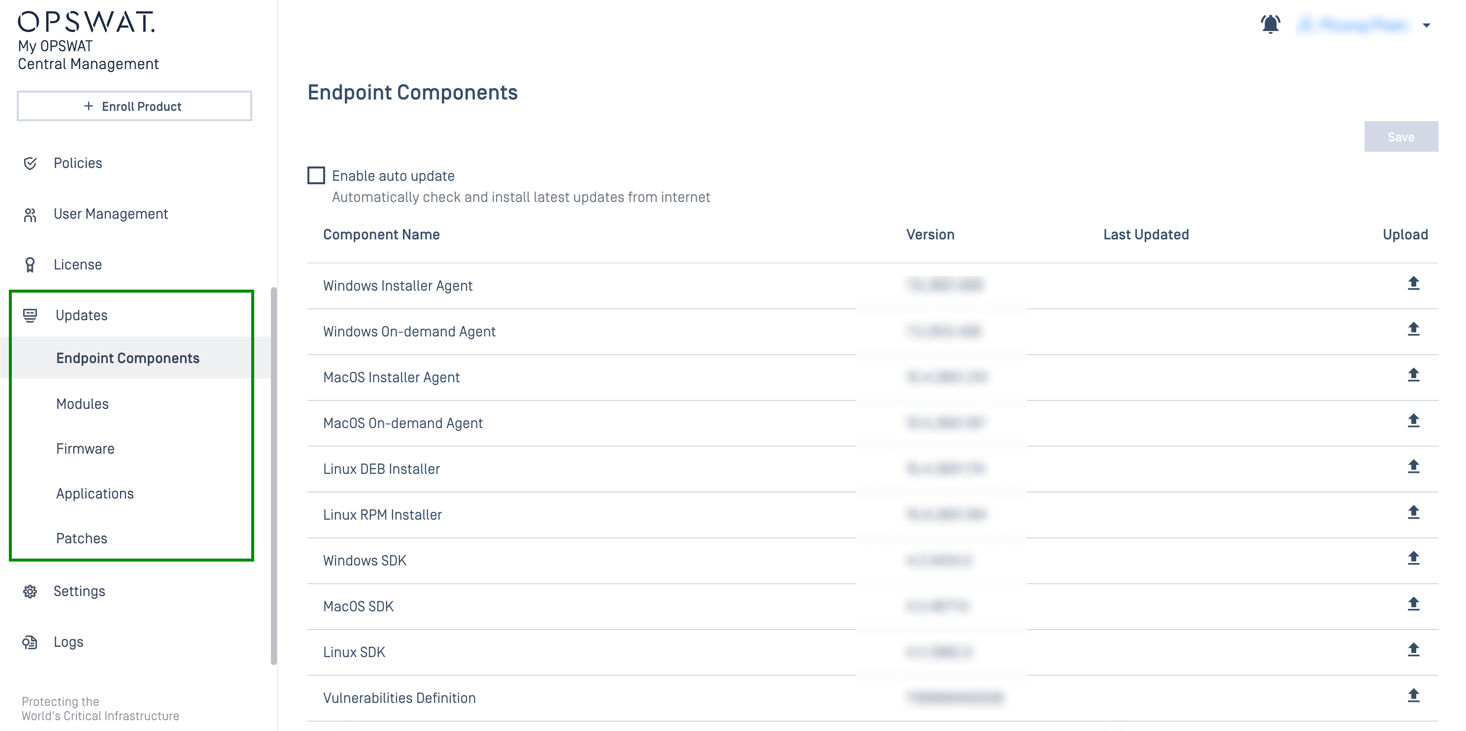 Introduced a new “Updates” tab in the left navigation, replacing the previous Settings > Update Package sub-tab. This change brings a clearer structure for managing endpoints, modules, firmware, applications, and patches, making update management more intuitive and accessible.