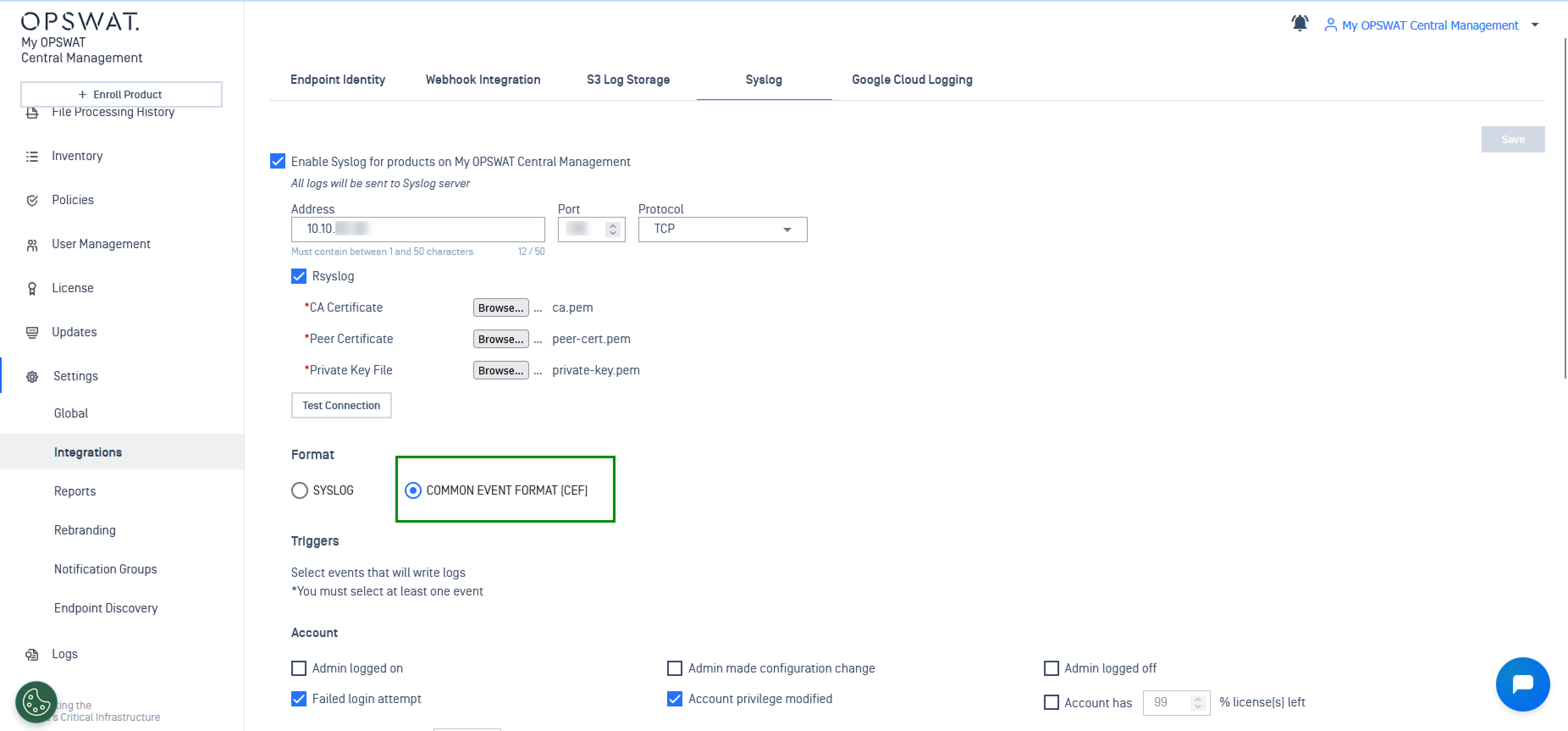 Added support for Common Event Format (CEF) to enhance compatibility with SIEM and log management platforms.