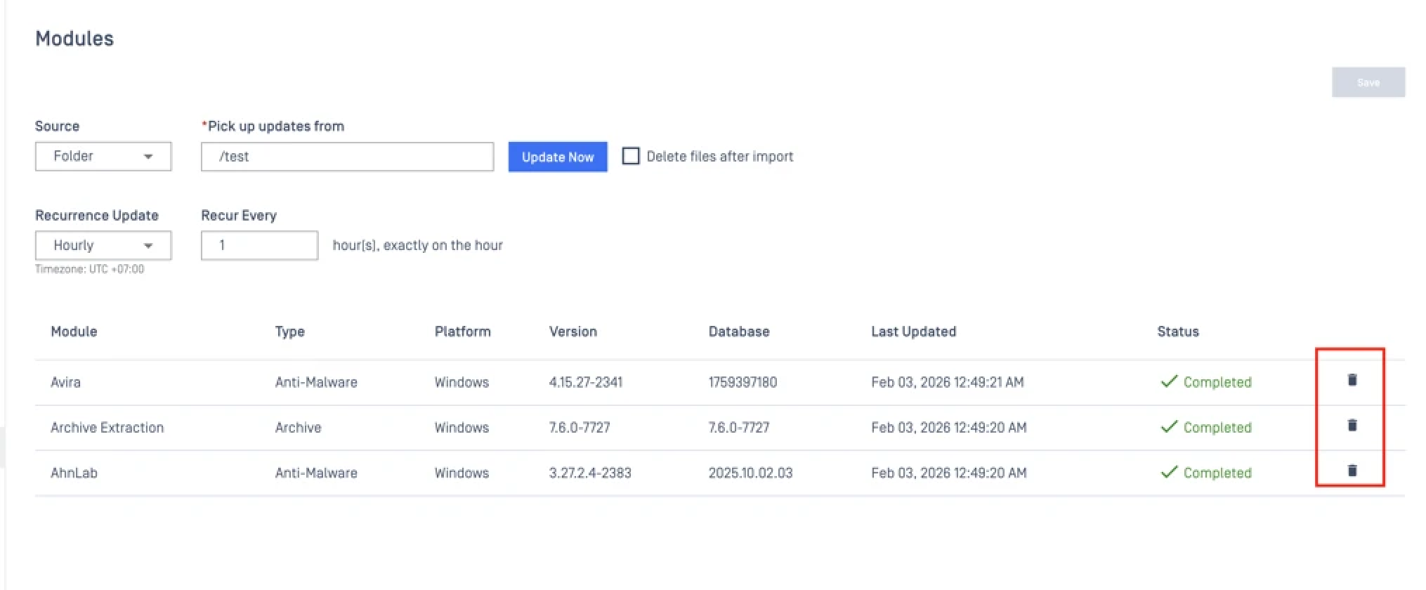 Enabled administrators to remove unlicensed or unwanted engines from the Modules tab, giving you greater control over your deployed modules.