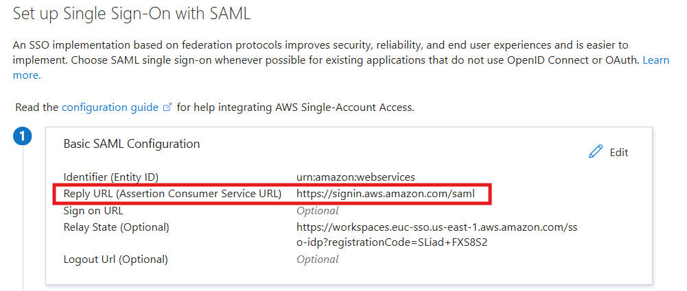 - Click the edit icon (pencil icon) on Basic SAML Configuration section