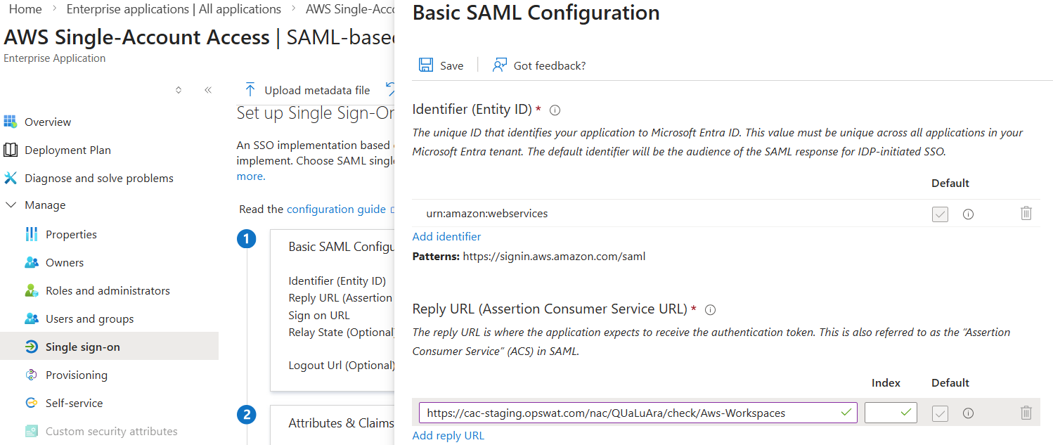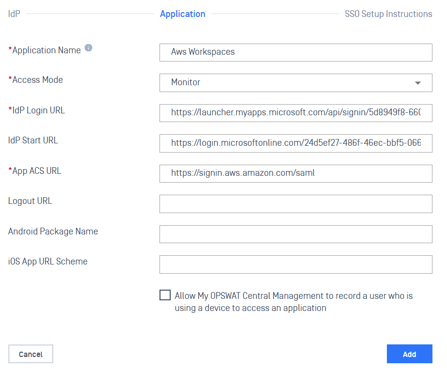 Follow below steps to integrate My OPSWAT Central Management with your Microsoft Entra ID & AWS WorkSpaces.