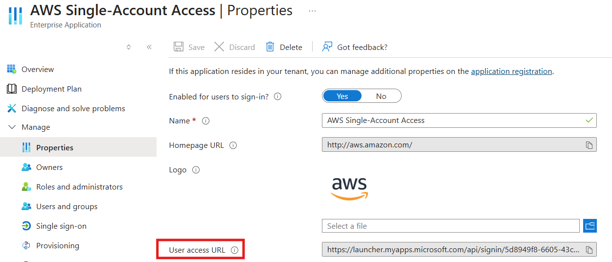 - Navigate to the Properties tab and copy the User access URL