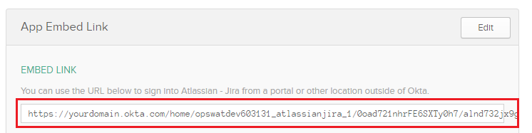 - IdP Login URL: this is an embed link which Okta generated for the app to embed outside Okta. You can find this URL on General tab, scroll down to the App Embed Link section
