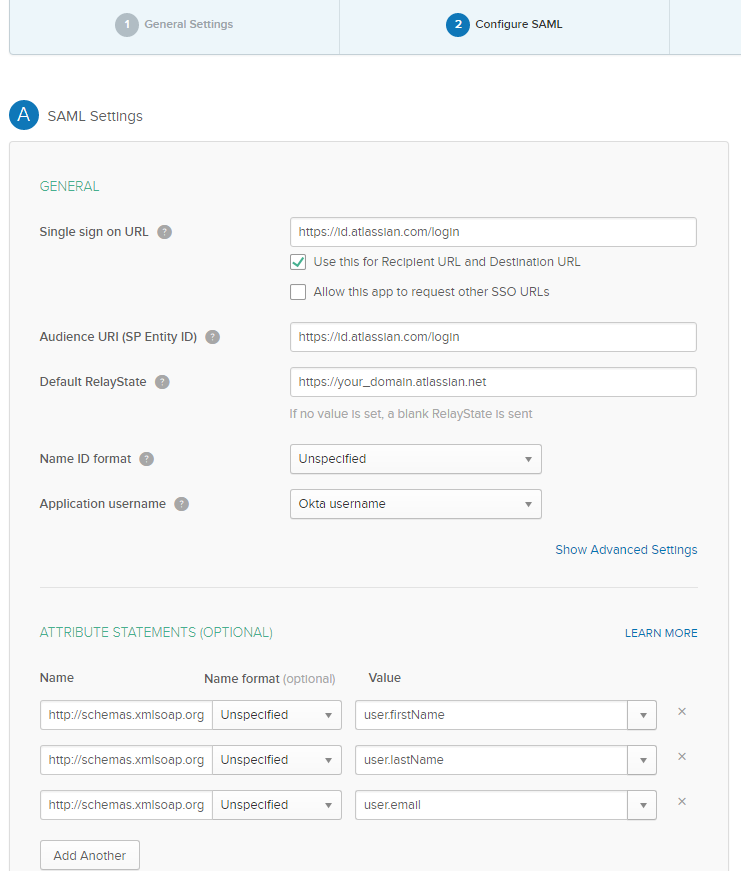 Note: you can add Atlassian application (step 2.5) when you add Okta IdP settings in step 2.4.