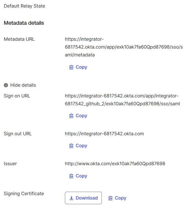 - Audience URI (SP Entity ID): fill with format https://github.com/orgs/<your organization>