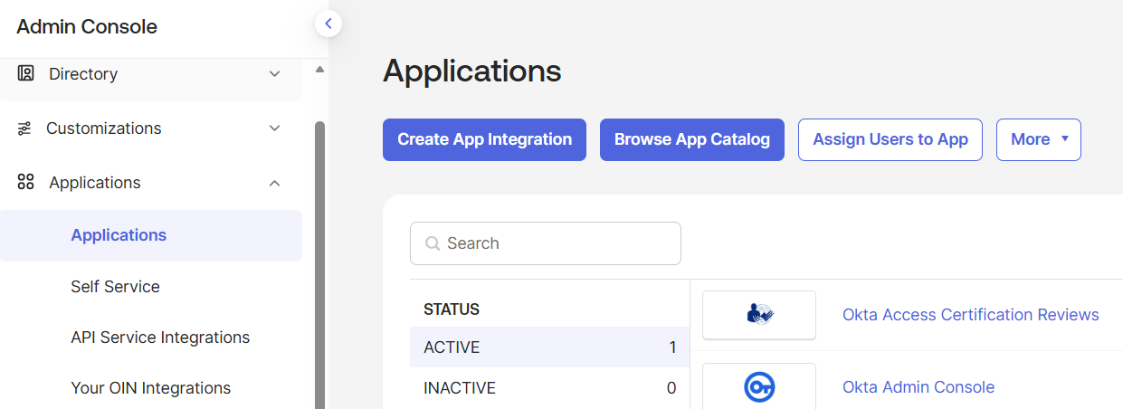 - Navigate to Applications -> Applications then click on Create App Integration