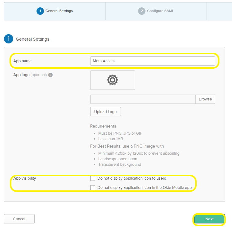 - Advanced users may choose other options but it’s recommended to use these setting unless you’re very familiar with Okta.