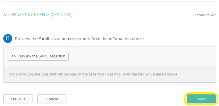 - Default setting are fine for “Default Relay State”, “Name ID format”, “Application username”, and “Update application username on”.
