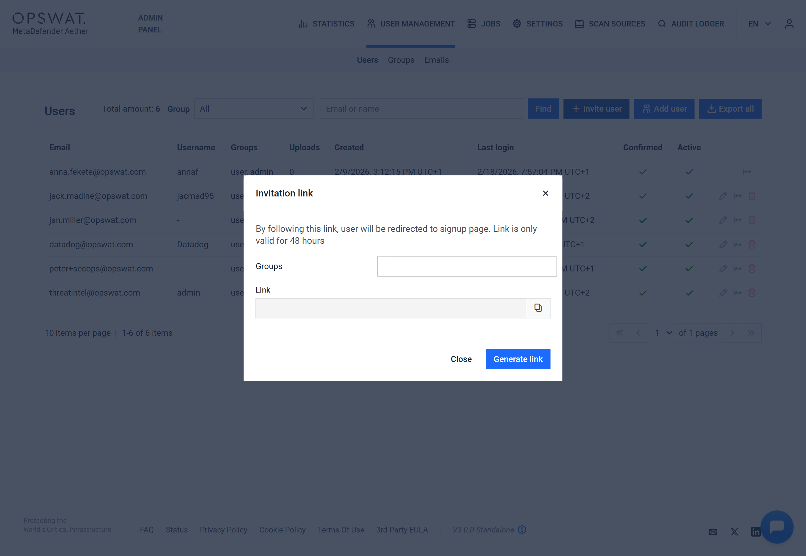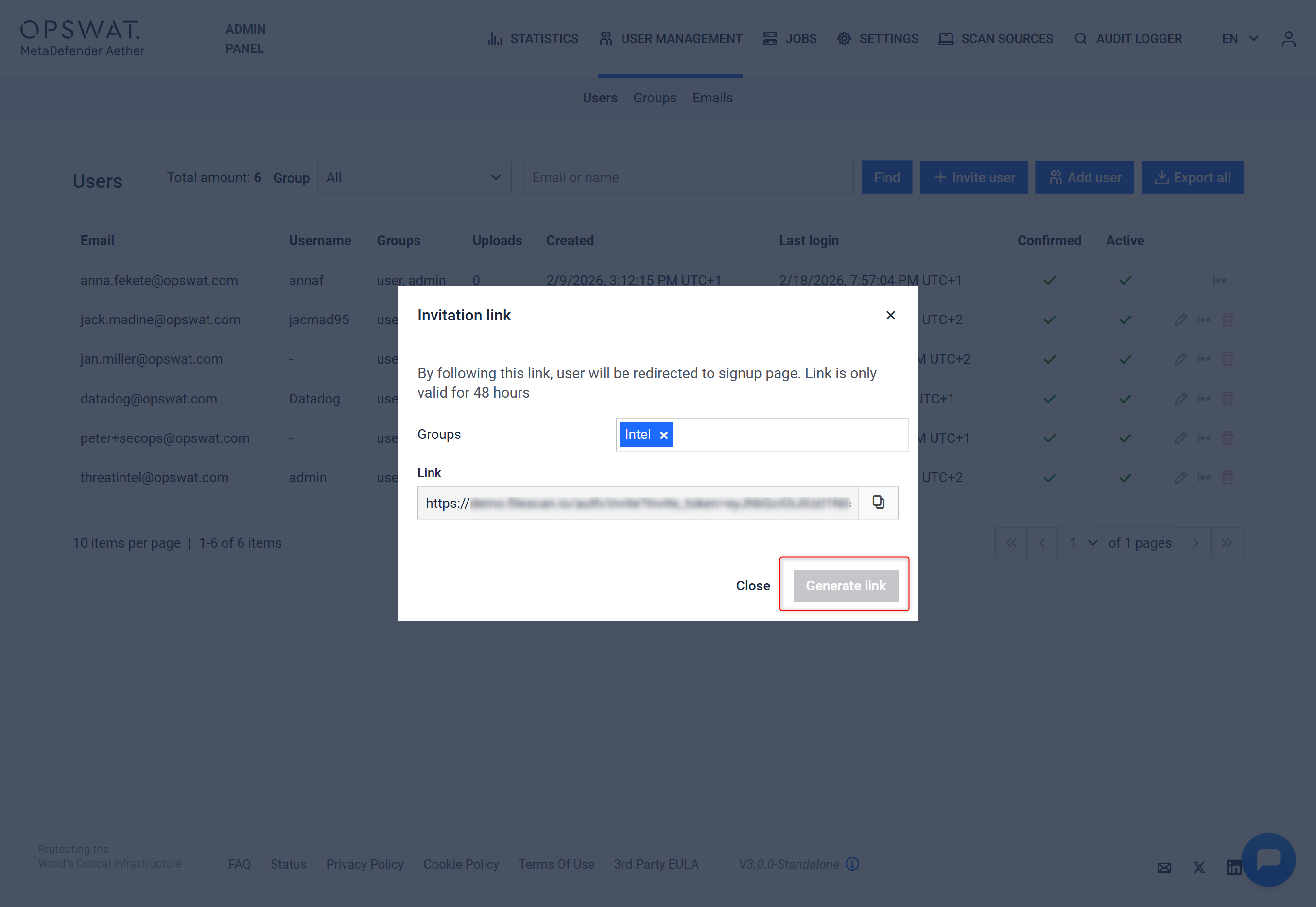 You may choose between the following user group types from the drop-down to generate a link for the designated MetaDefender Aether user