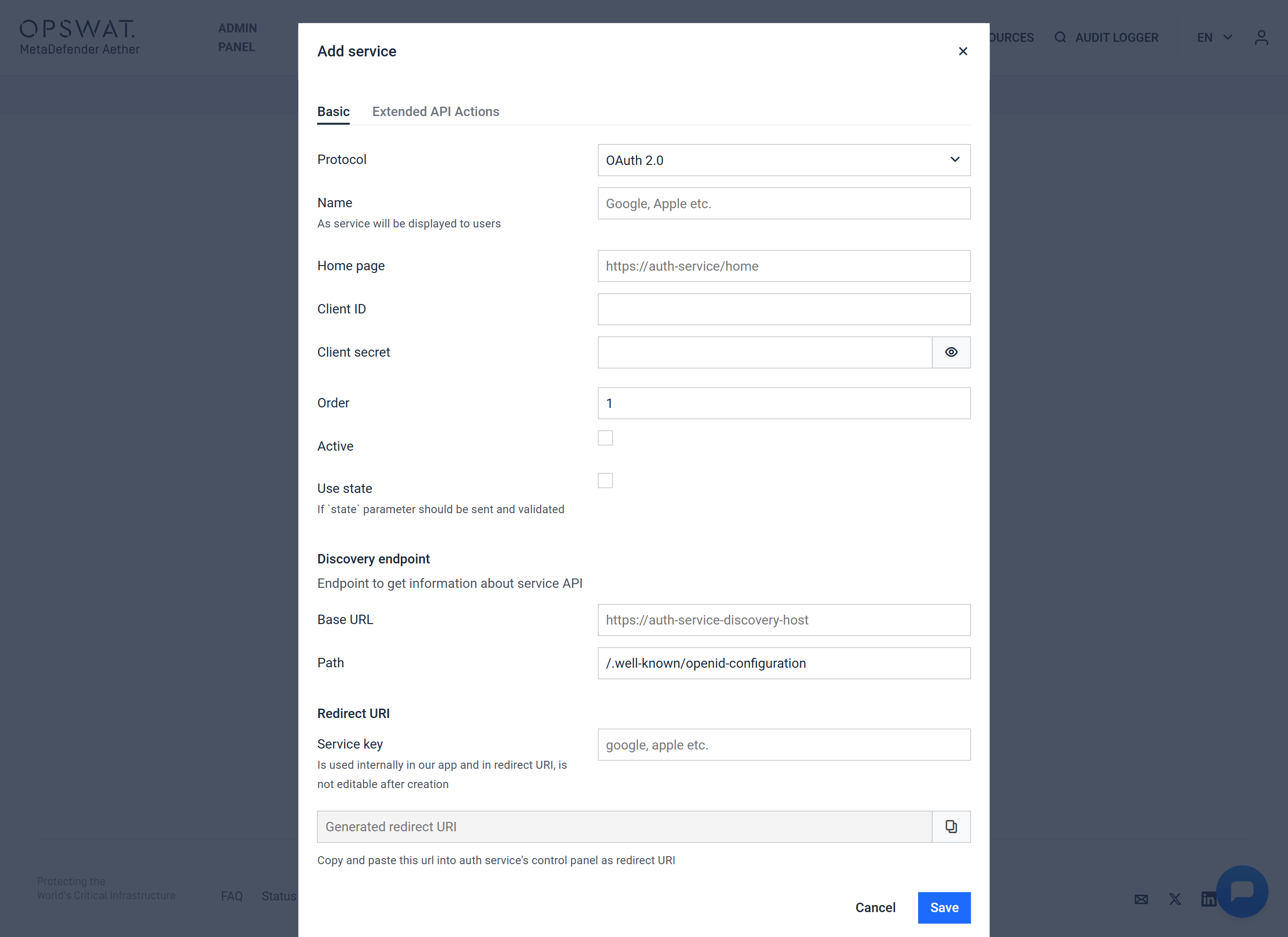 | Active | Enable or disable the authentication |