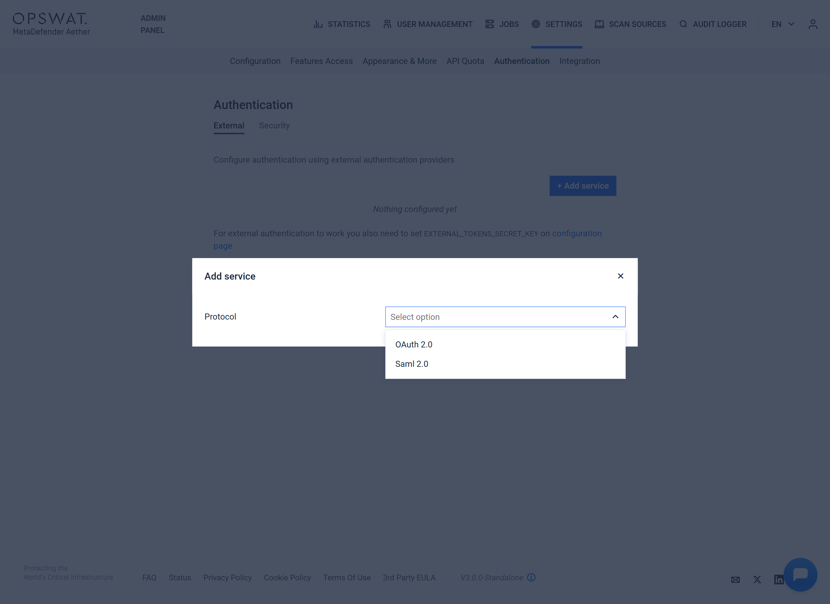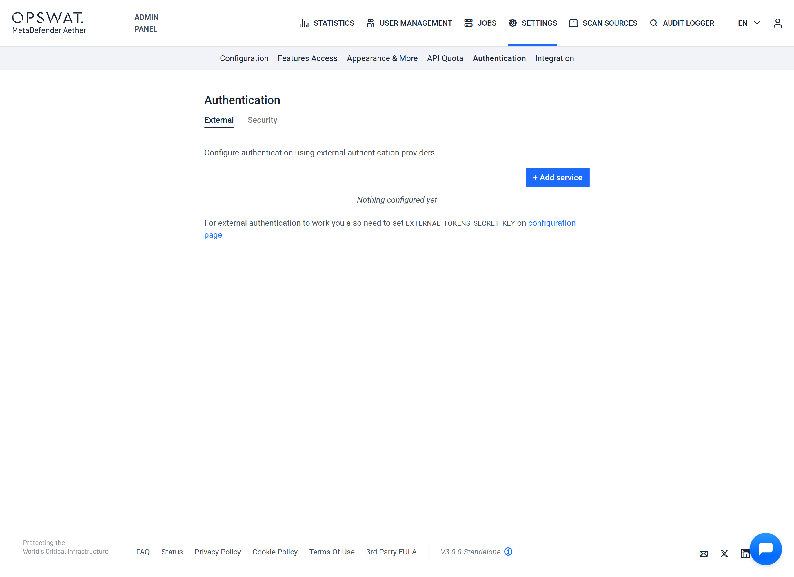 To add a new authentication method, click the + Add service button.