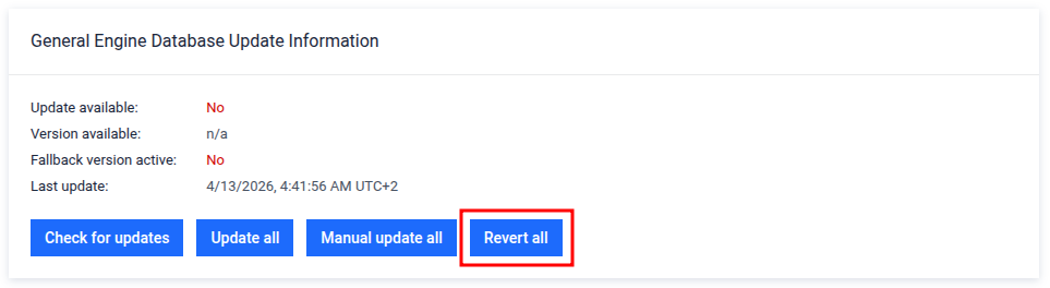 To revert to the previous database version, click Revert all on the same page.