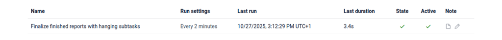 5. Configure "Finalize finished reports with hanging subtasks" job to run "Every 2 minutes" (Scan tab):