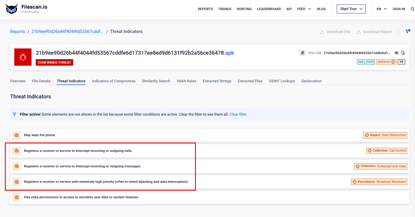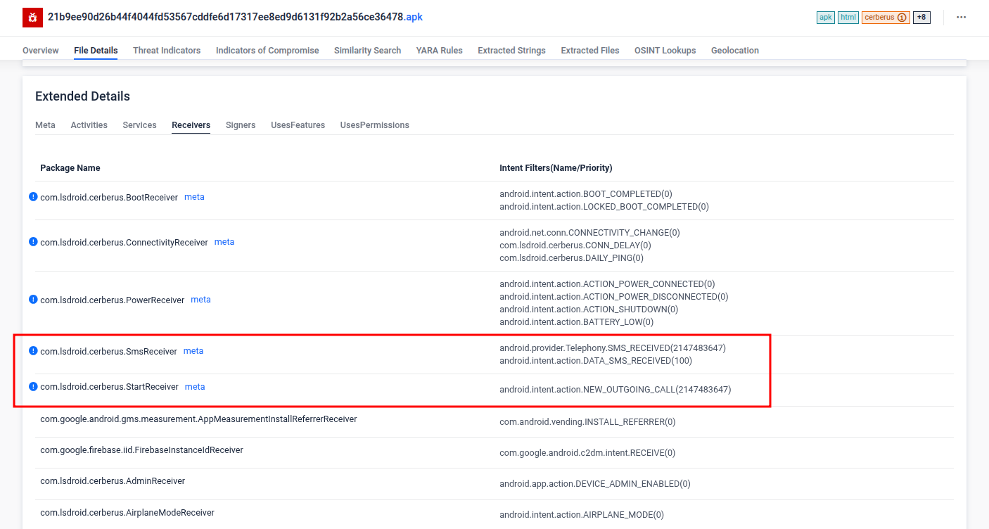Here we can see how Cerberus can intercept communications (using high priority intents), including one-time passwords and transaction verification codes from banking apps, allowing attackers to bypass two-factor authentication. Check out the full report here!