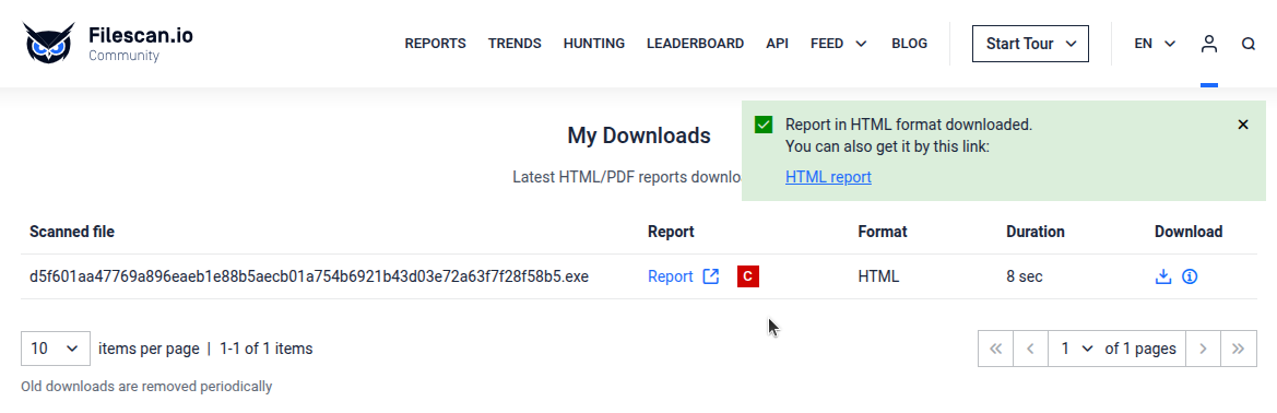 In case of PDF or HTML, the exported files can be downloaded from "My Downloads" :
