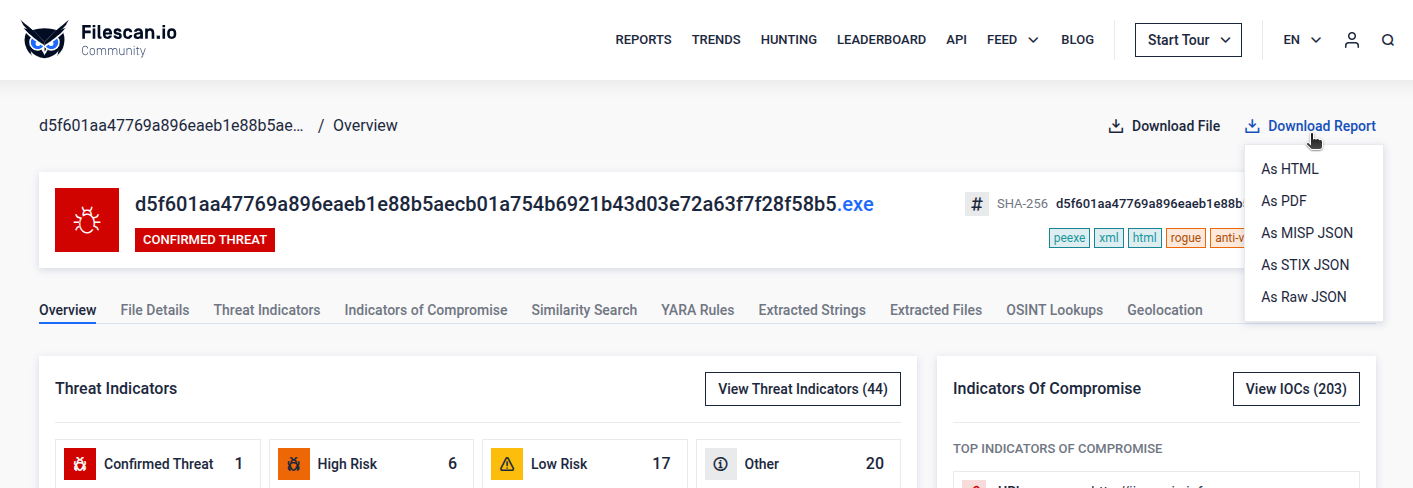 The export process may take several minutes, depending on the size of the report and its contents. This duration is largely influenced by the selected settings, such as whether to include interesting strings or not