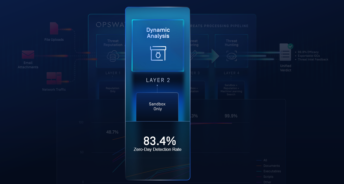 Unknown and suspicious files are executed in an emulation-based sandbox that bypasses anti-VM and timing-based evasion. Runtime behaviors, loader chains, scripts, and artifacts are exposed even when malware tries to stay dormant.