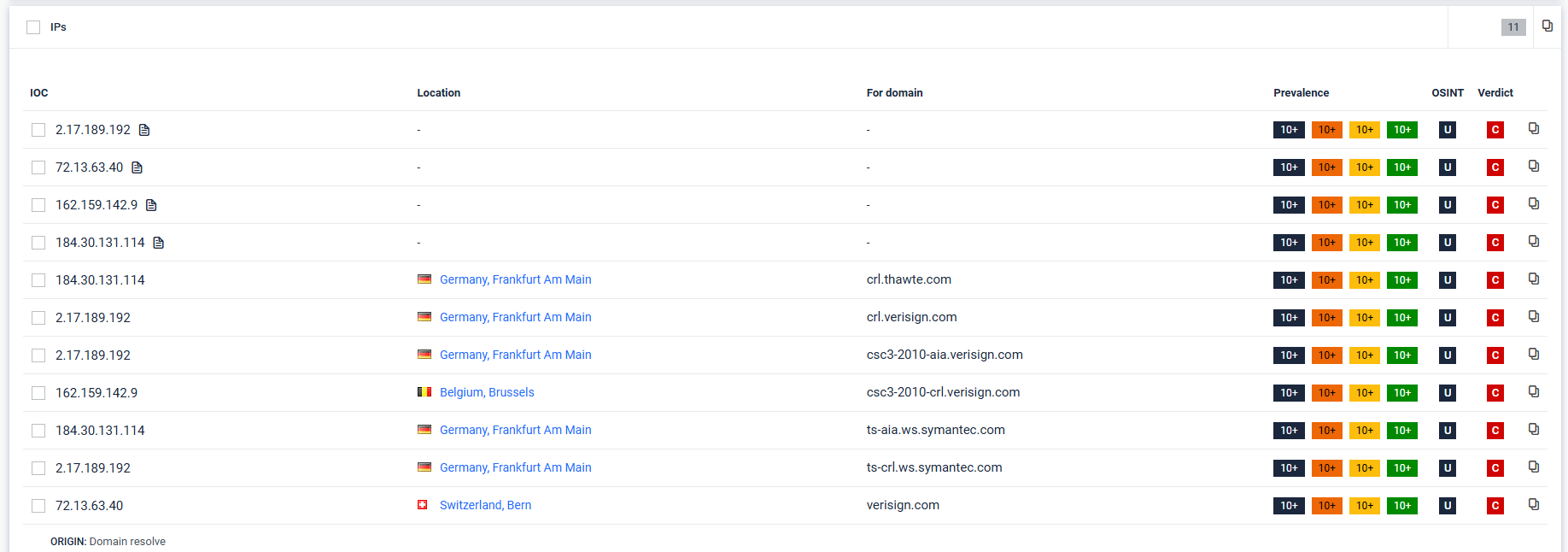 • For domain: domain context if the IOC was derived from a domain resolution step