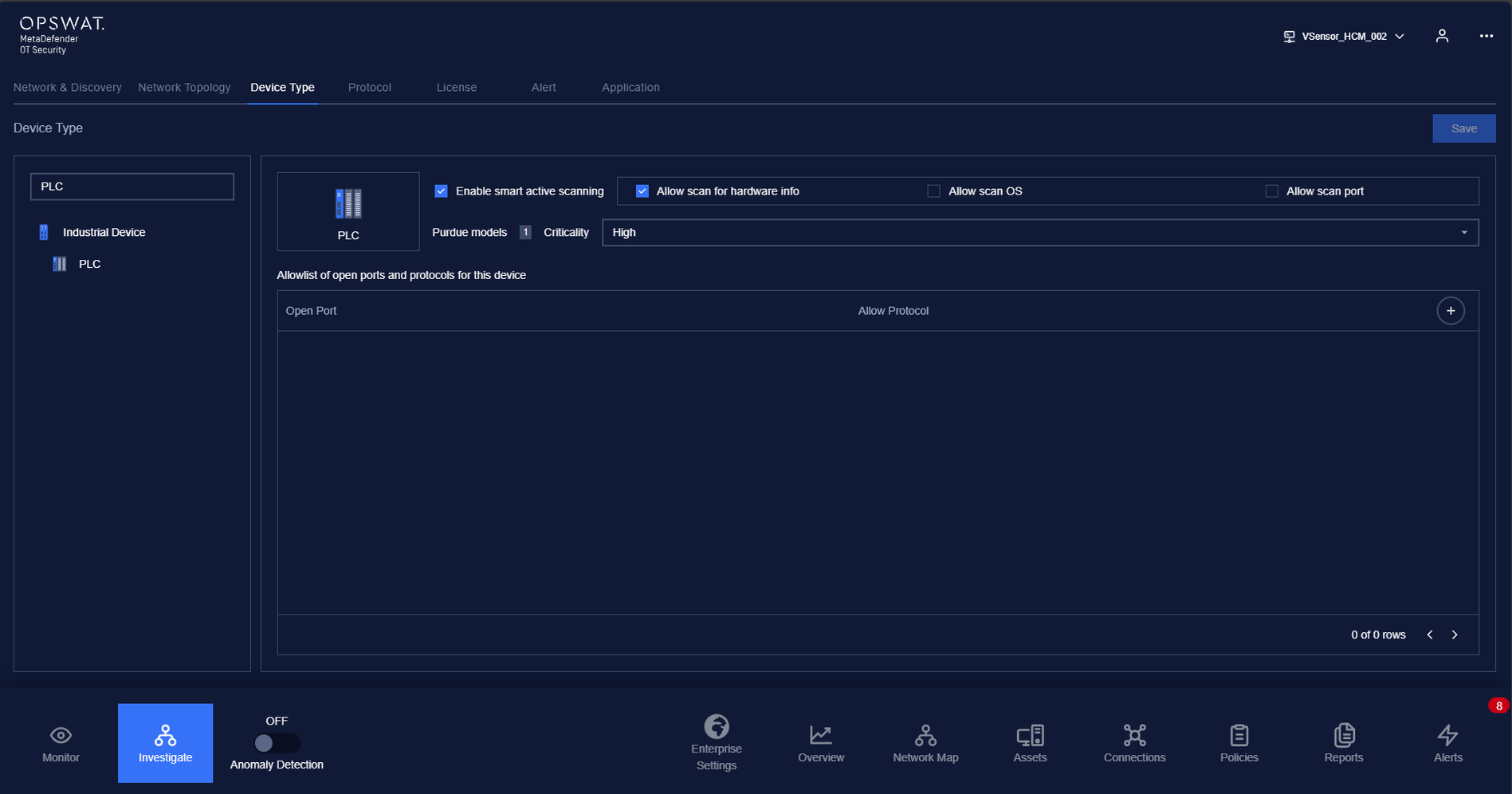 - Set the allowed port and allowed protocol on that port (will make an alert if the device has open ports not on the list or communicate by protocol that is not allowed on a port)